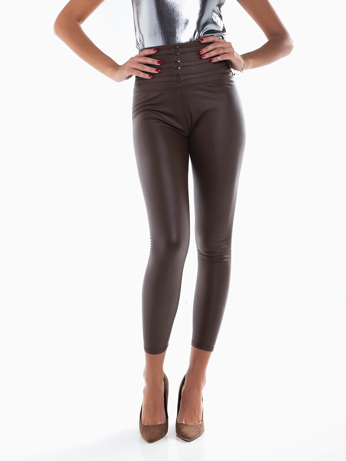 Leggings polipele com tiras no cinto para senhora. Leggings cintura alta com interior cardado para maior conforto térmico.