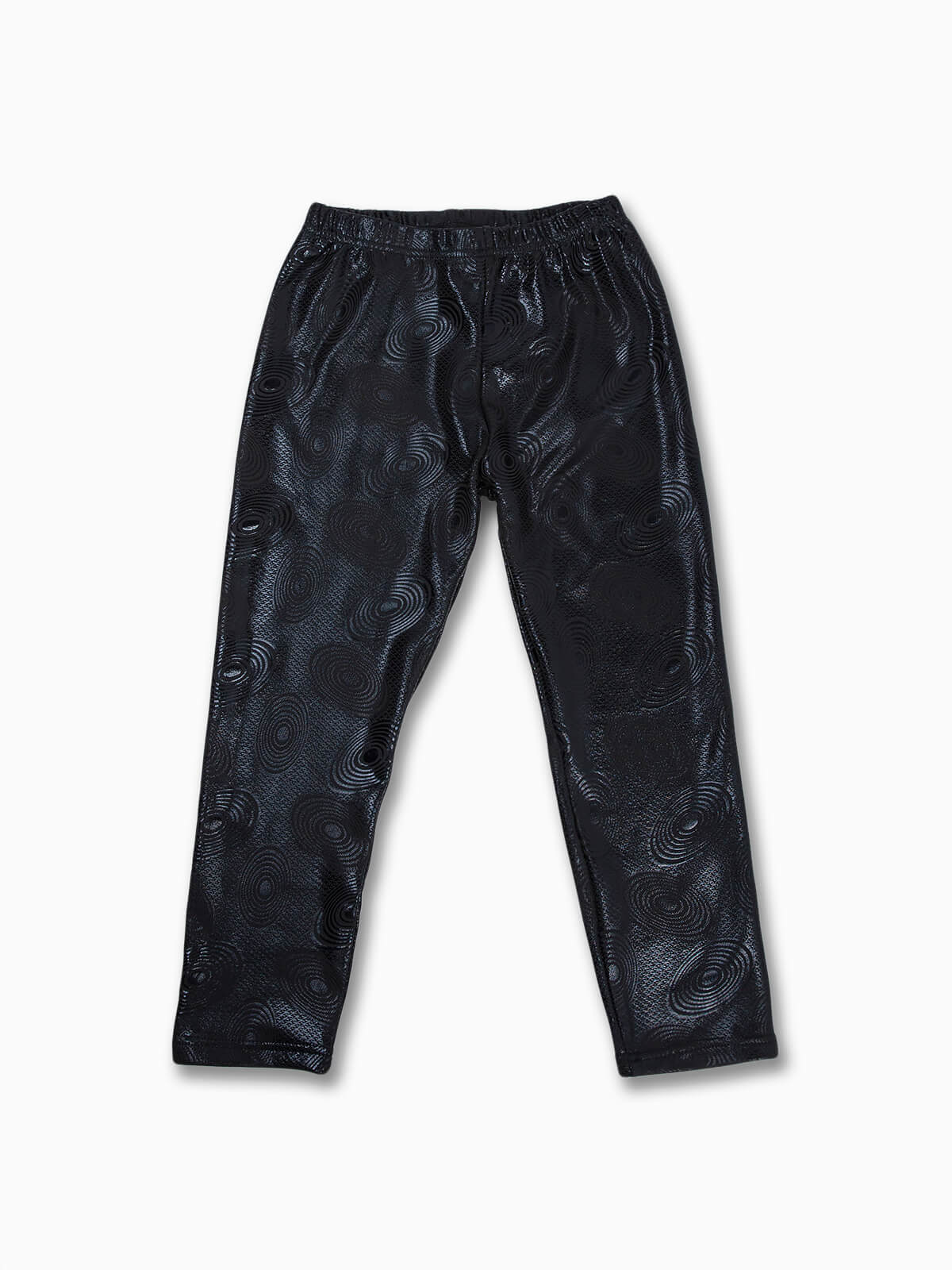Leggings pretas com estampado geométrico brilhante. Leggings elásticas com interior cardado para menina.