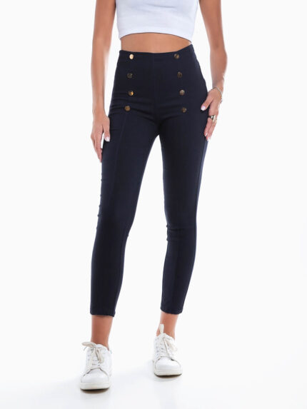 Leggings em pele sintética de cintura alta com efeito push-up. Leggings para mulher com 2 bolsos na parte posterior. Interior cardado.