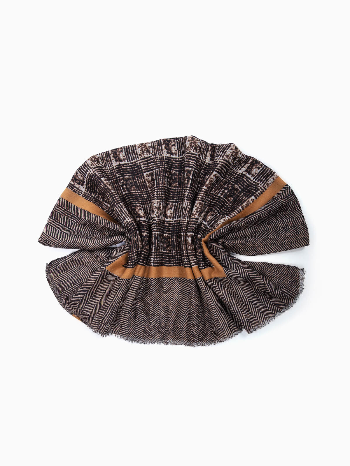 Lenço comprido com estampado para senhora. Lenço largo com encaixe de tira de cor.