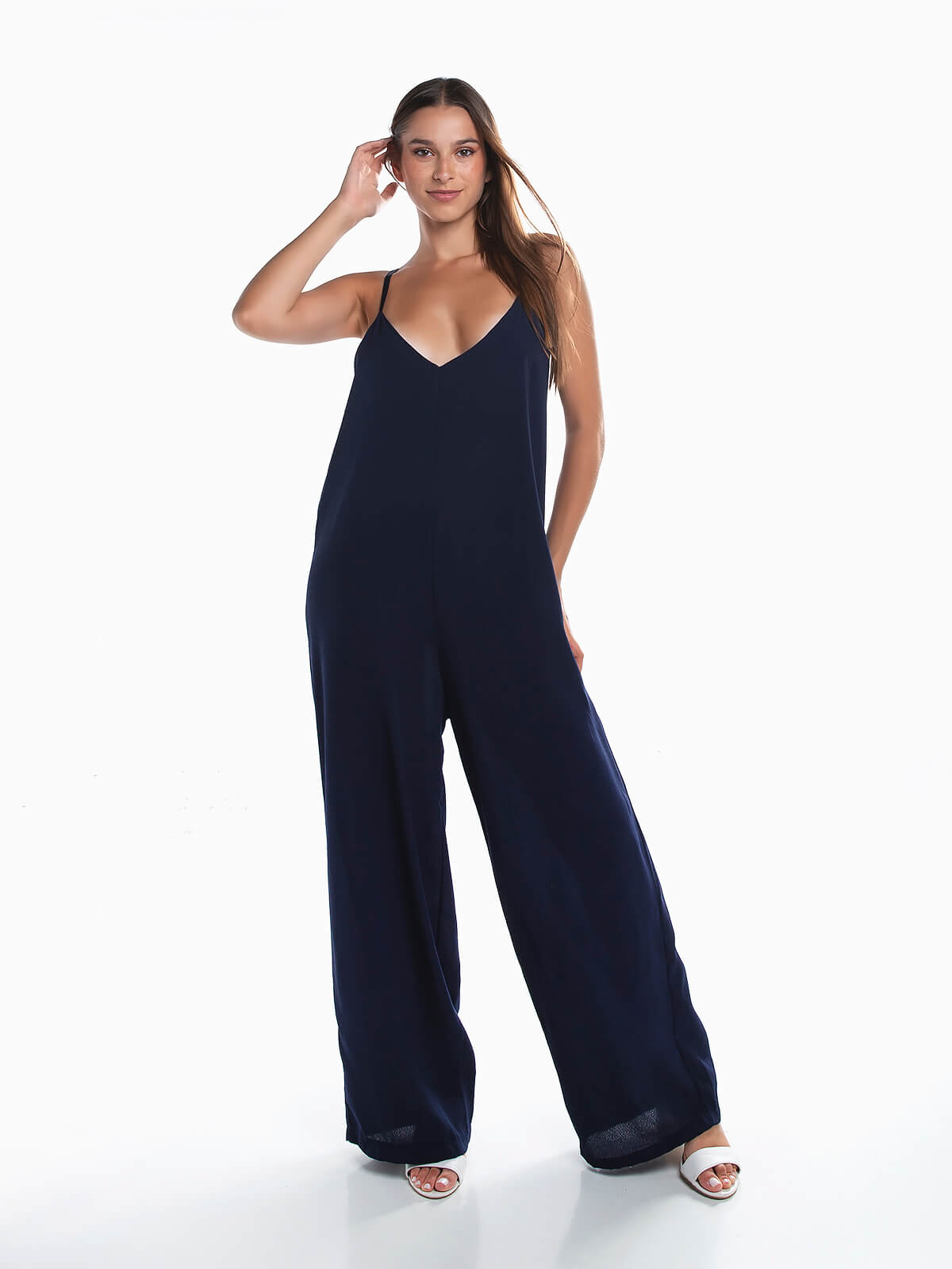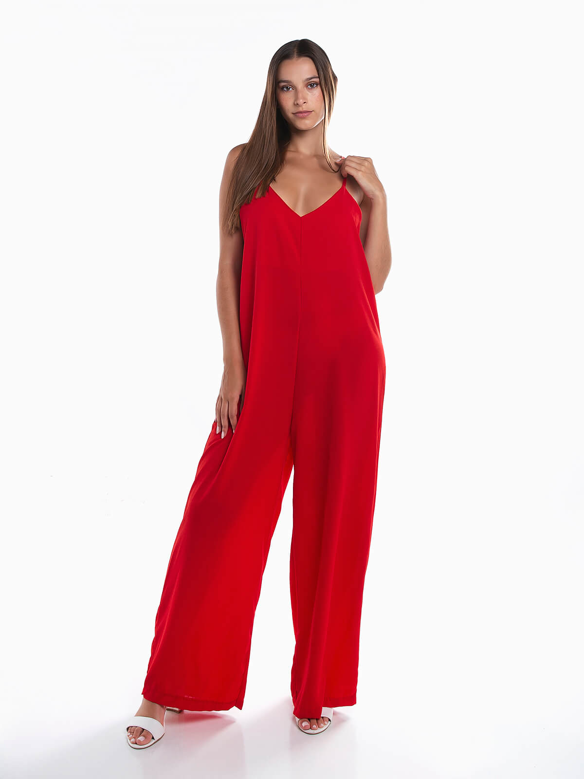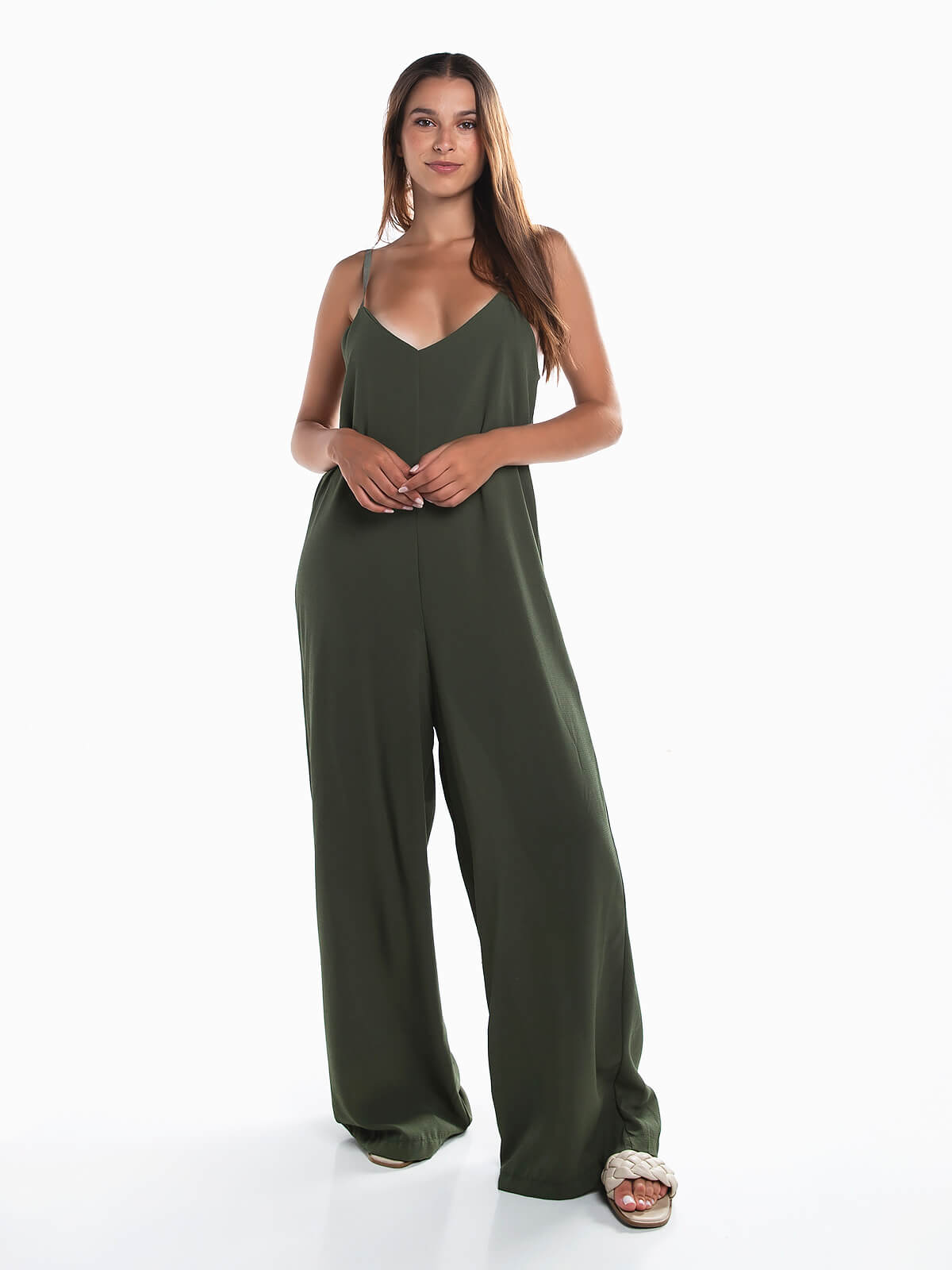 Início Mulher Conjuntos e Macacões Macacão comprido largo em V