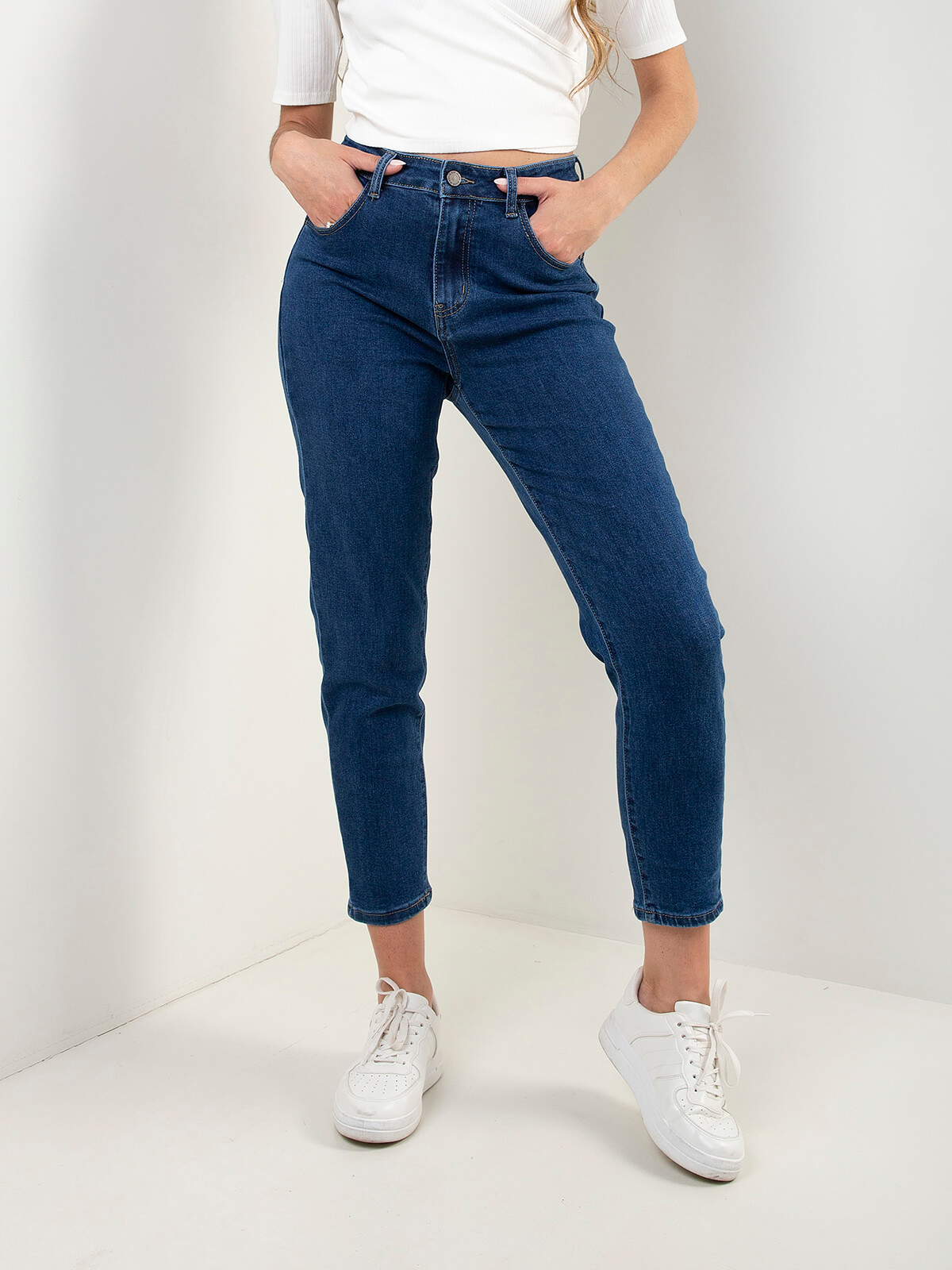 Início Mulher Calças de Ganga Mom jeans push-up azul escuro