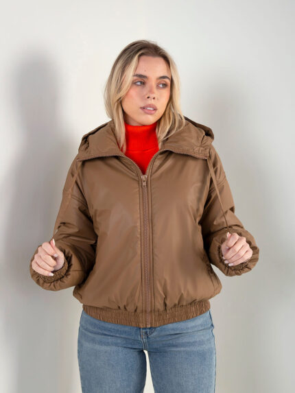 Blusão acolchoado efeito pele com capuz 29,99 €