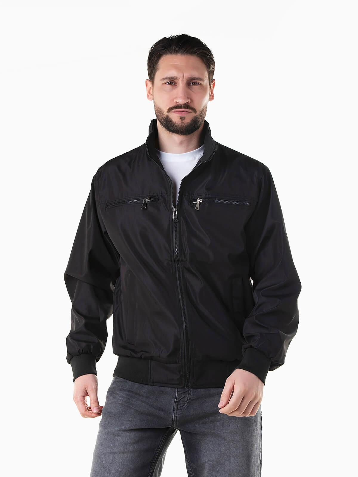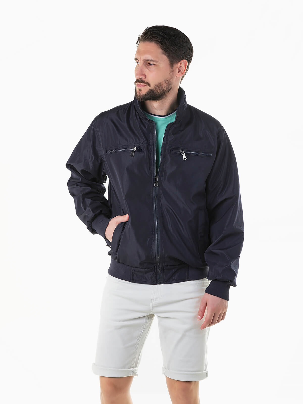 Parka impermeável com gola subida para homem. Blusão manga comprida com acabamentos elásticos. 4 bolsos e 1 interior. Aperto fecho zíper.