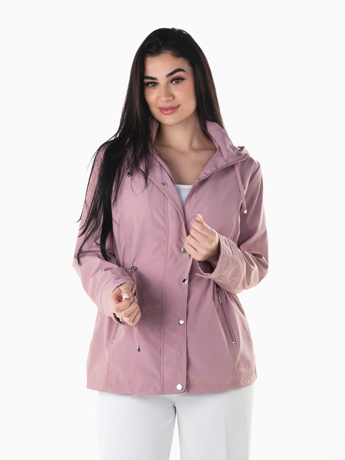 Parka impermeável com forro às riscas. Parka com capuz removível e manga comprida. Dispõe de elástico na cintura para ajustar. Gola alta. 2 bolsos laterias e 1 interior. Aperto fecho éclair e botões de pressão.