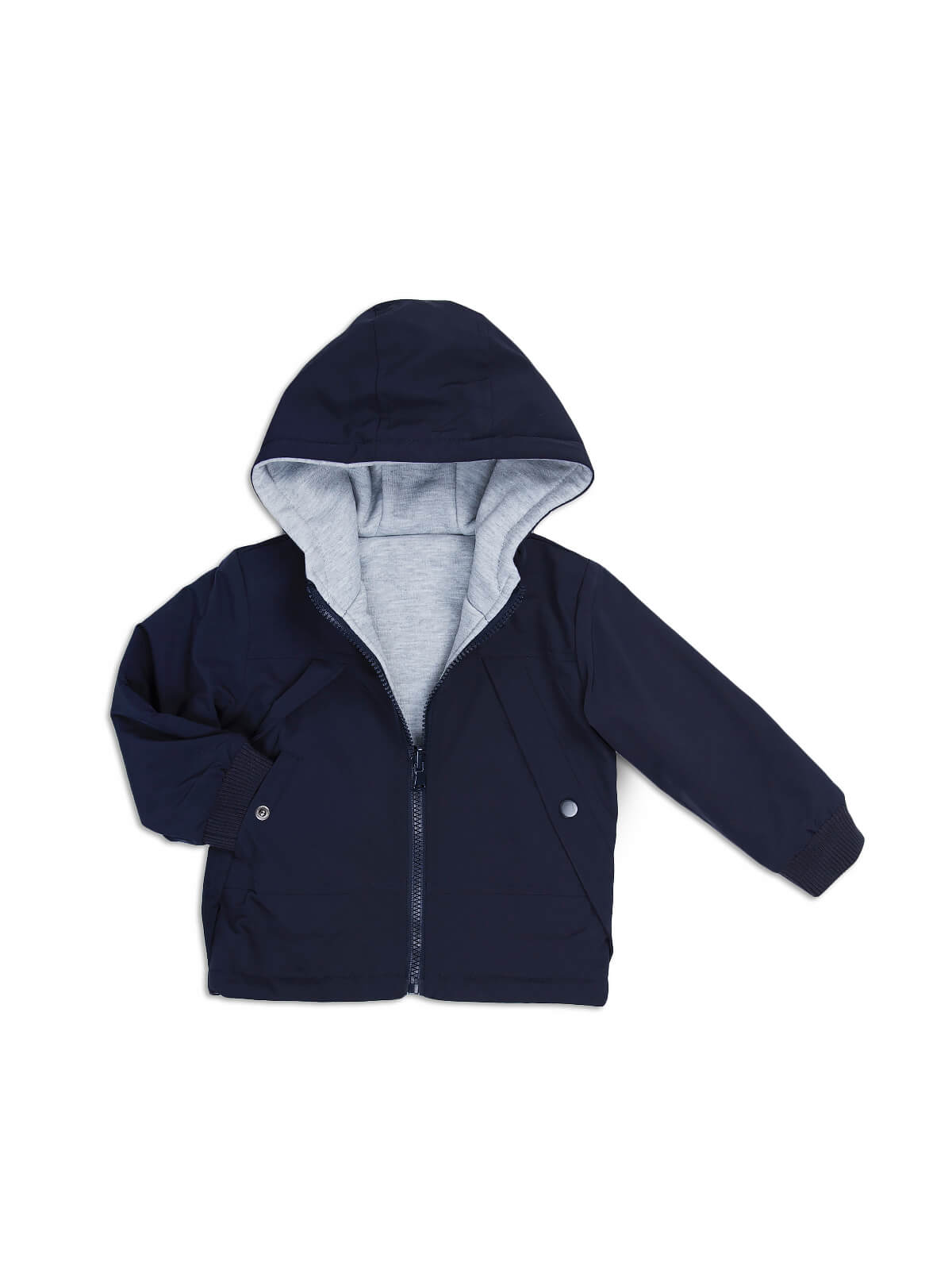 Parka reversível em tecido com capuz para bebé menino. Gola ligeiramente subida. Manga comprida e punhos elásticos. Aperto com fecho zíper. Bolsos ocultos na frente por aba com botões de pressão.