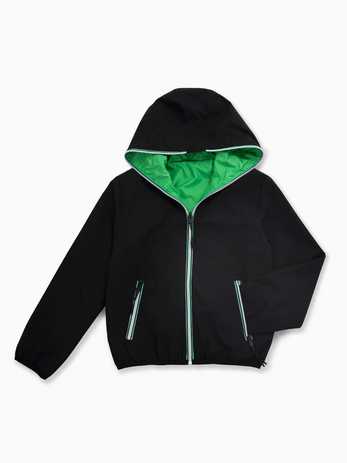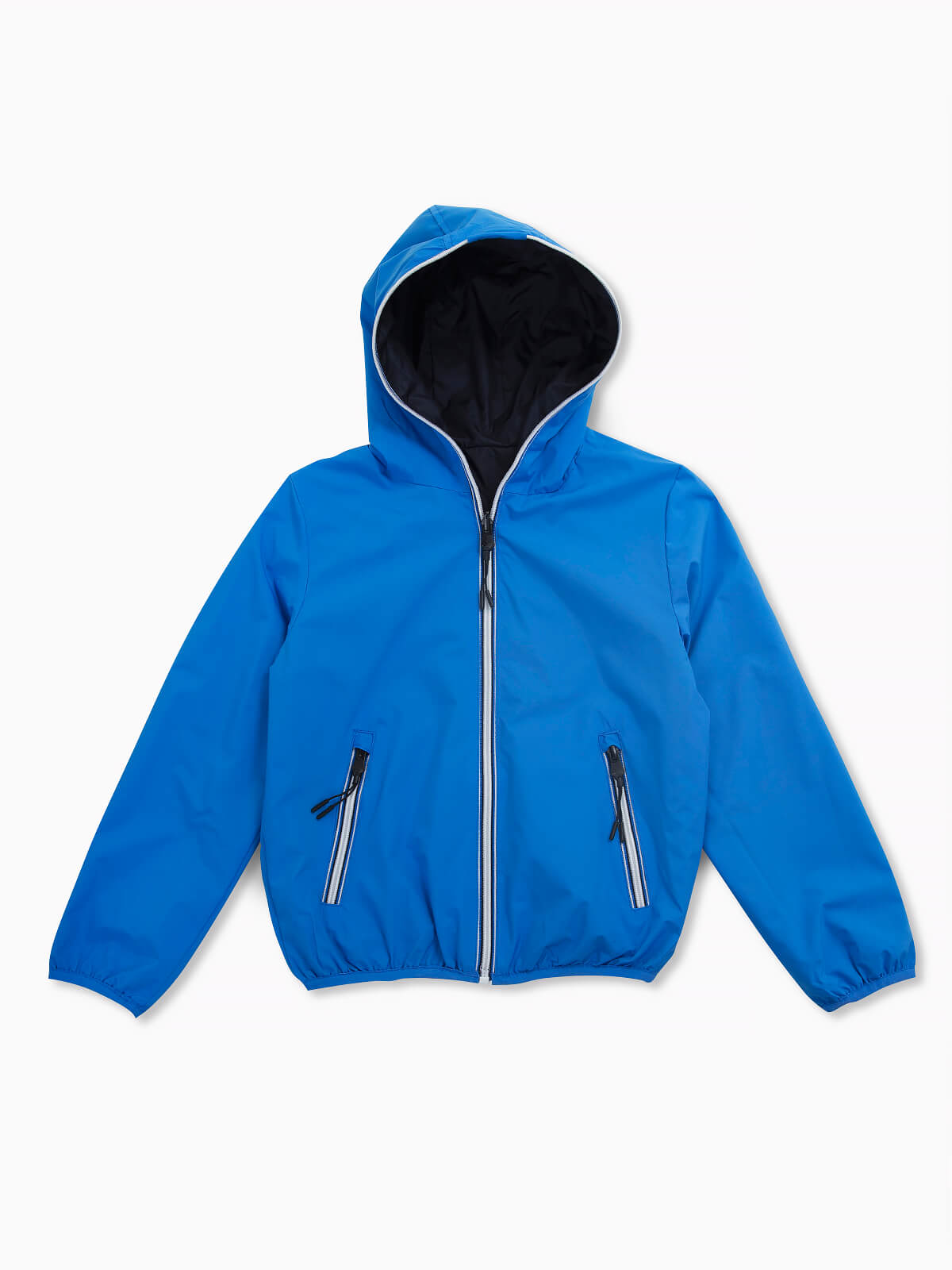 Parka reversível com capuz para menino. Corta-vento impermeável manga comprida com 2 bolsos. Aperto fecho zíper.