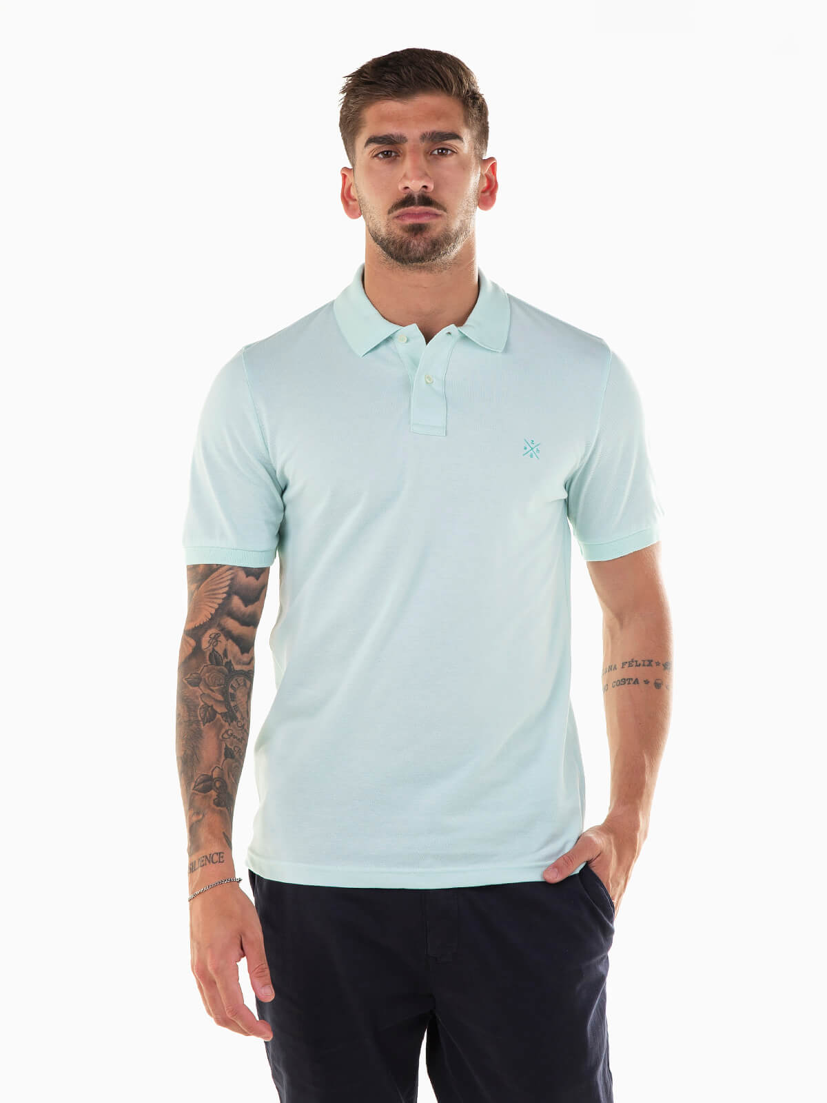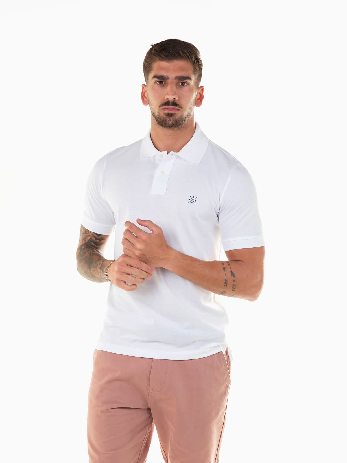 Polo liso em malha piqué com símbolo bordado no peito. Polo de manga curta para homem com gola abas. Carcela reforçada com 2 botões.