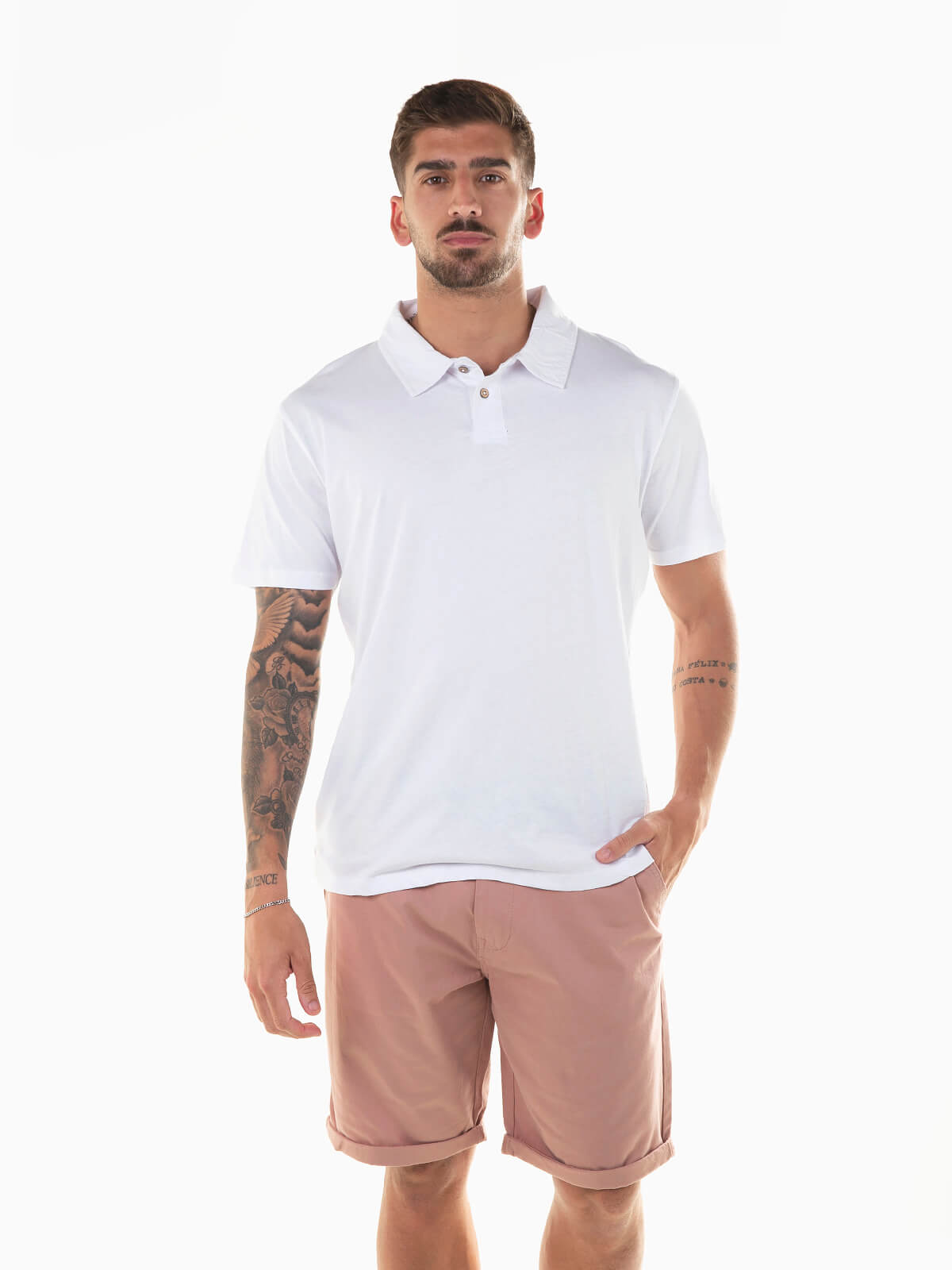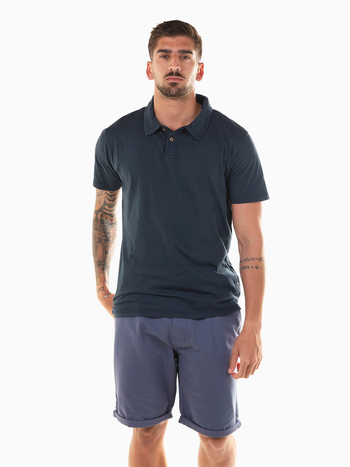 Polo liso 100% algodão para homem. Polo de manga curta com gola abas. Carcela reforçada com 2 botões.