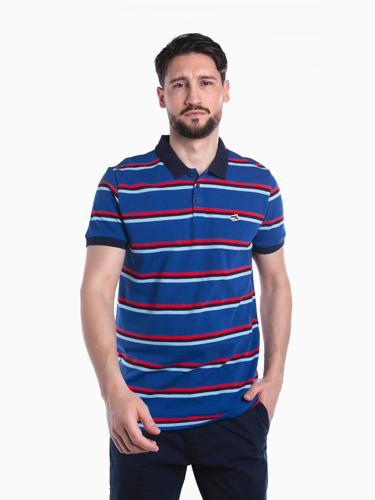 Polo de manga curta às riscas para homem. Polo em tecido piqué com símbolo bordado no peito. Carcela com 3 botões. Gola de abas.