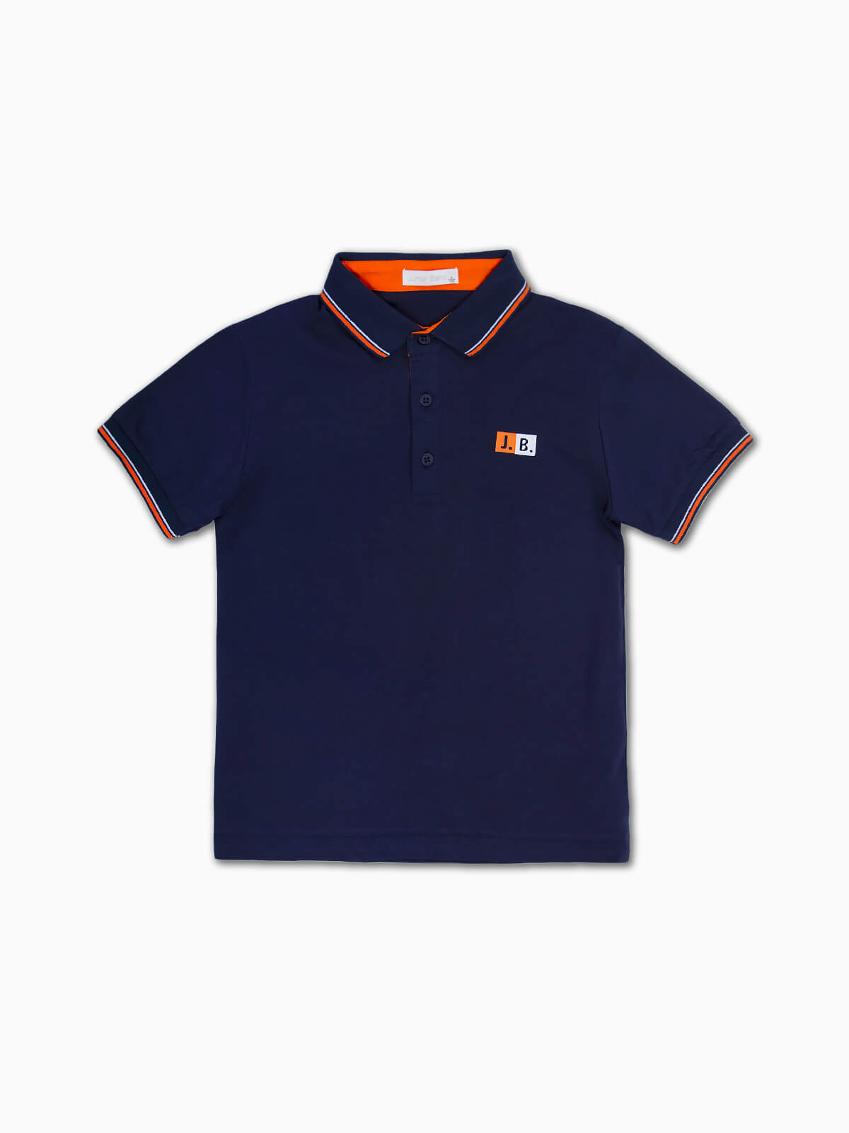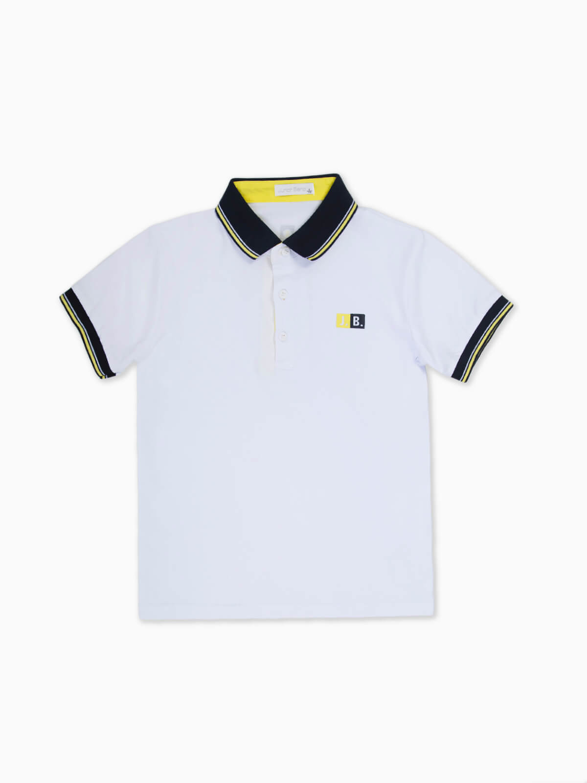 Polo de manga curta com letras estampadas no peito. Polo em algodão com gola clássica e carcela com 3 botões. Pormenor de tiras de cor em contraste.
