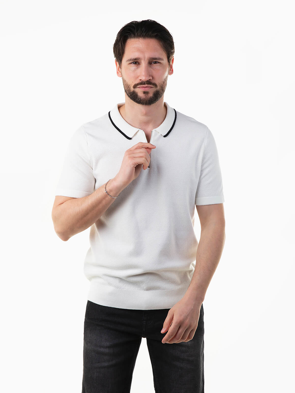 Polo de manga curta 100% algodão para maior conforto. Polo estruturado de homem com gola abas e color block. Aperto de fecho zíper. Acabamentos canelados.