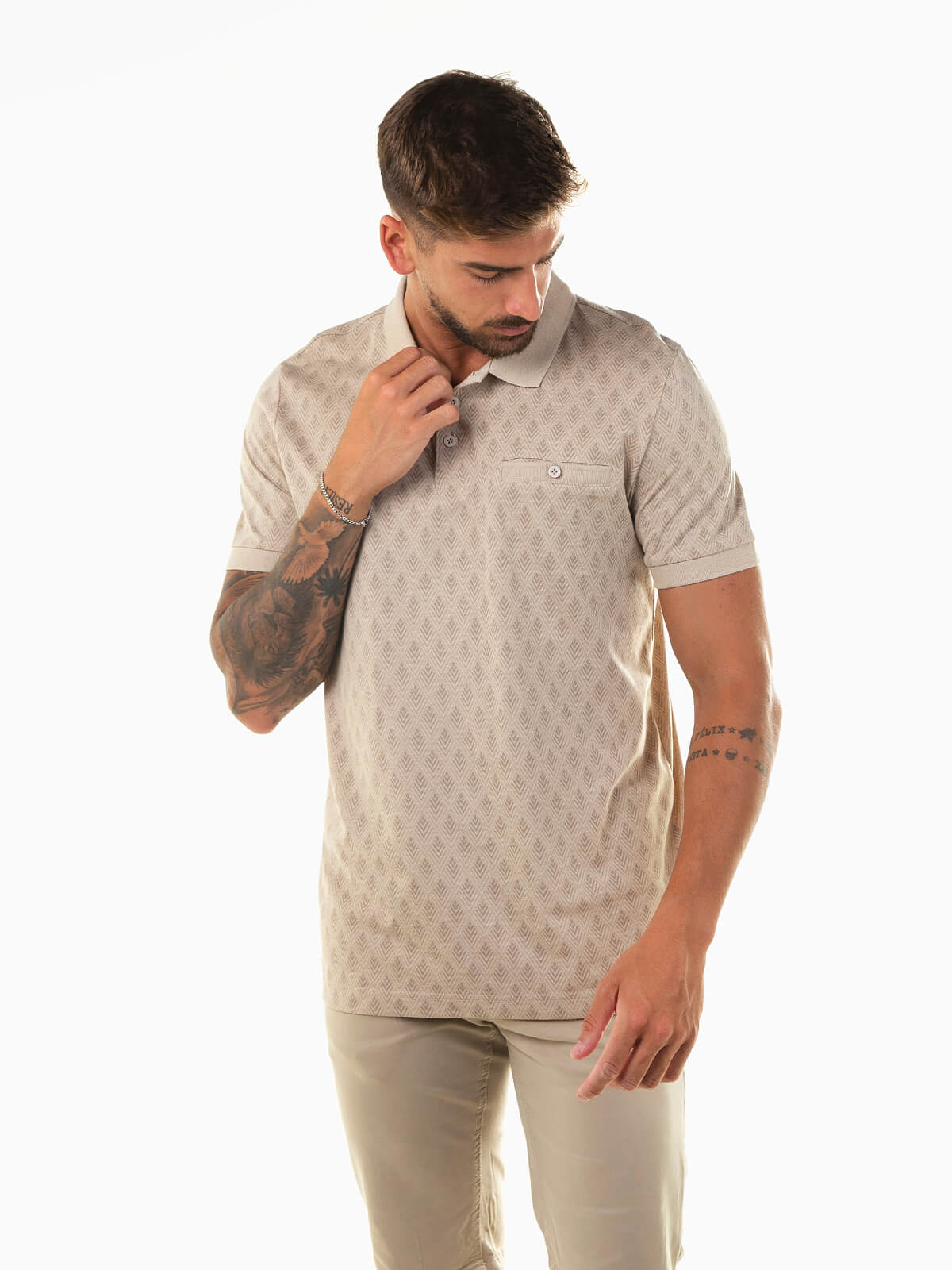 Polo de manga curta mesclado com padrão de losangos, que combina estilo e conforto num só modelo. Destaca-se pelo bolso funcional no peito, que acrescenta um toque prático e moderno ao design clássico. Carcela reforçada com 3 botões e gola clássica. Ideal para um look casual e contemporâneo.