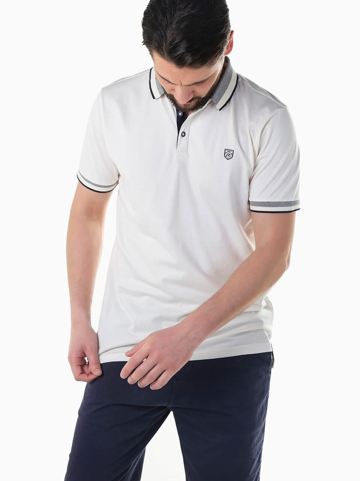 Polo de manga curta com símbolo no peito. Polo piqué 100% algodão para maior conforto. Gola abas mesclada. Carcela reforçada com 3 botões.