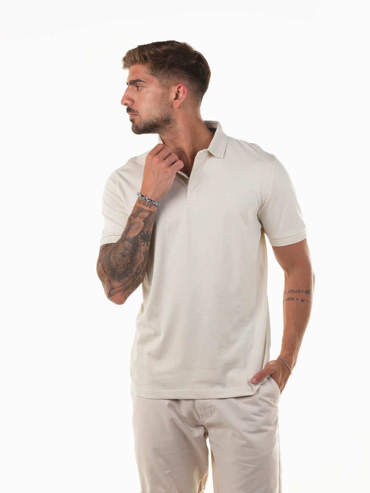 Polo manga curta gola estruturada