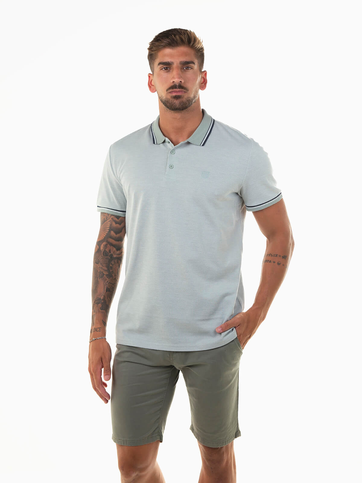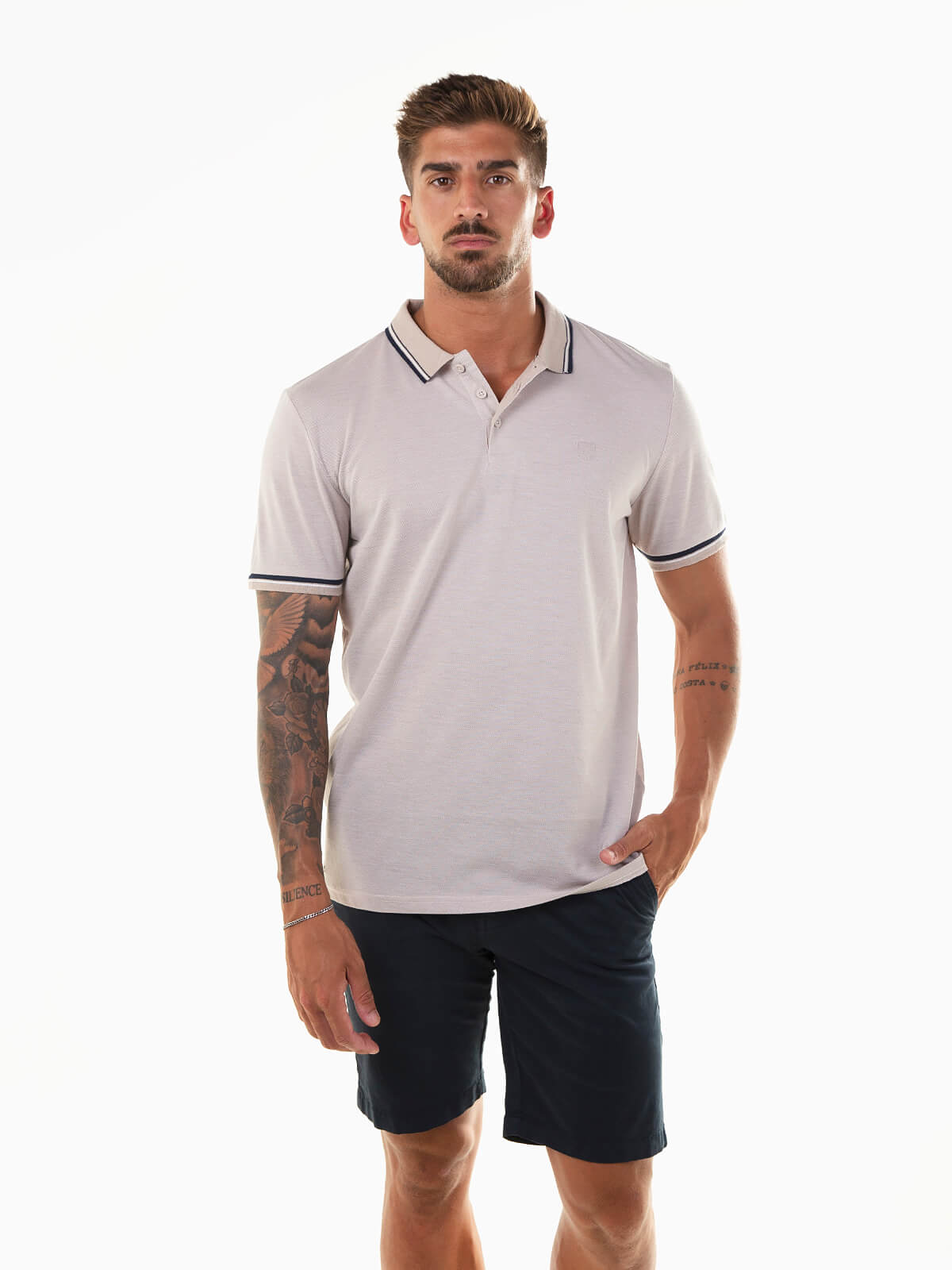 Polo de manga curta mesclado com símbolo no peito. Polo para homem com carcela reforçada com 3 botões. Gola abas. Um básico moderno e versátil, ideal para conjugar com calças de ganga, chino ou bermudas em looks casuais e descontraídos.