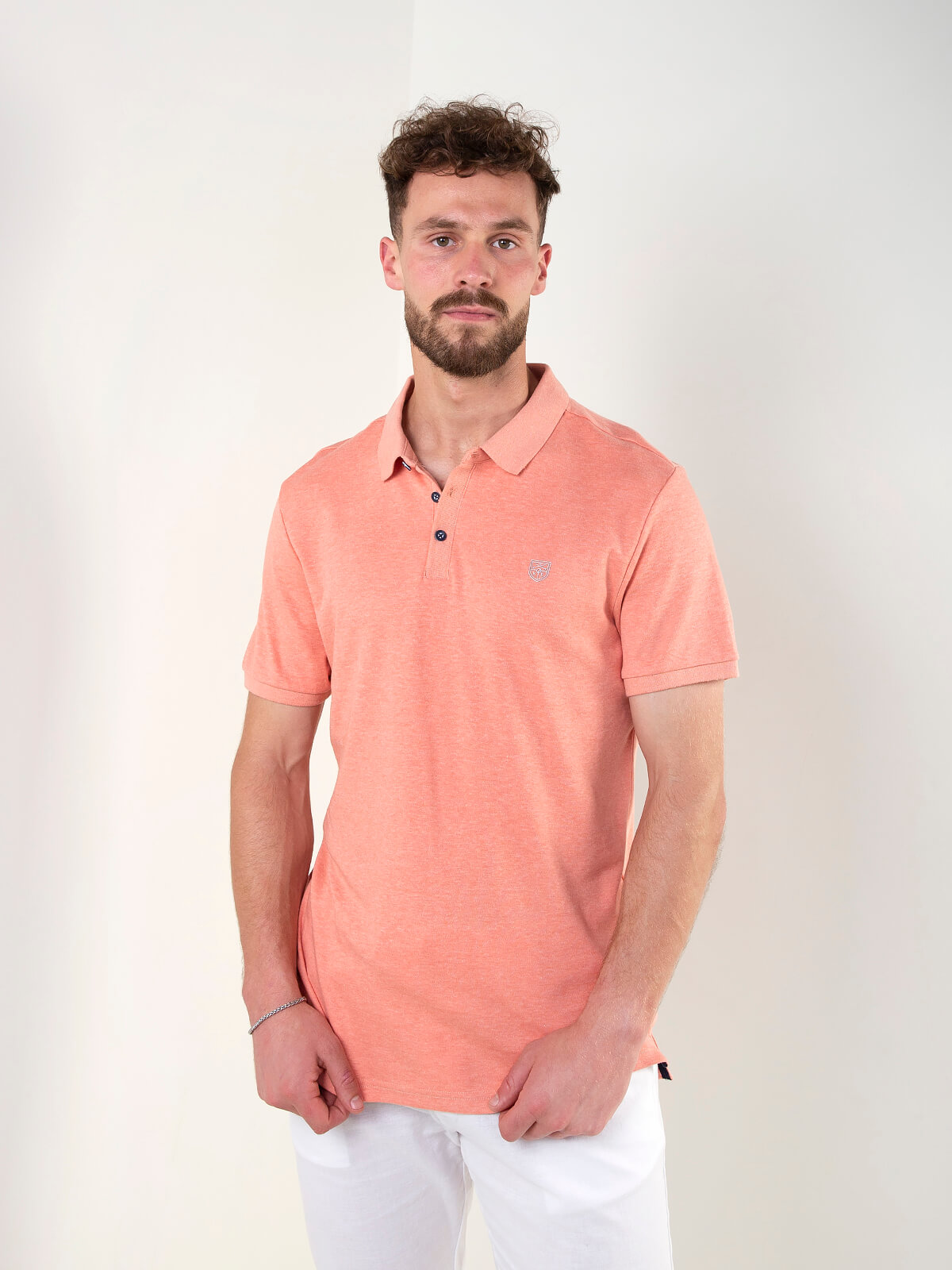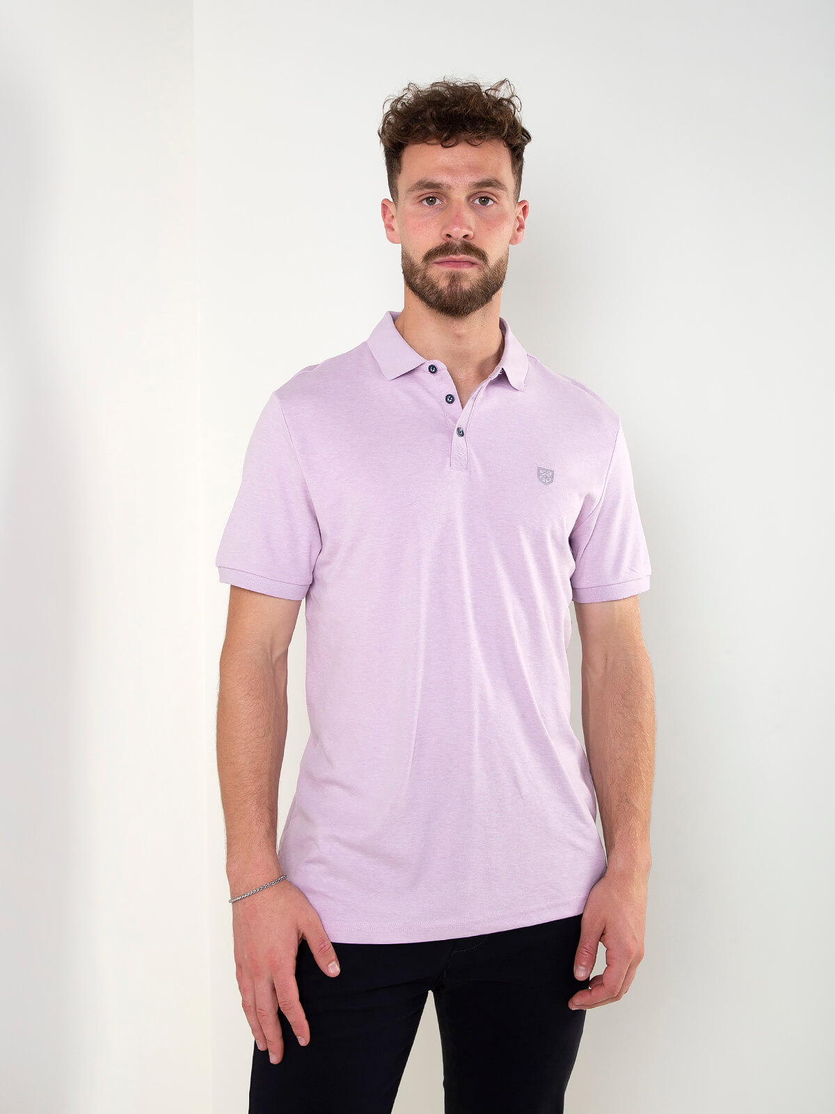 Polo de manga curta em tecido mesclado, com gola clássica e fecho de botões. Modelo confortável e versátil, ideal para looks casuais do dia a dia.