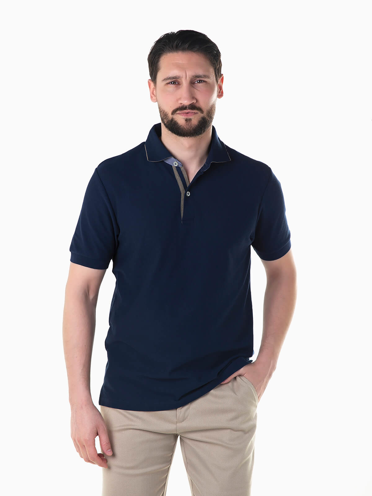 Polo manga curta em algodão piqué para homem. Polo com colarinho aba e pormenores em pele de pessêgo. Carcela reforçada com 2 botões.