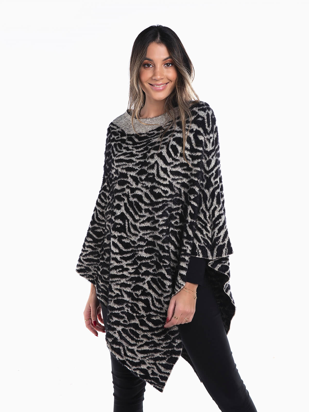 Início Mulher Malhas Ponchos Poncho malha animal print
