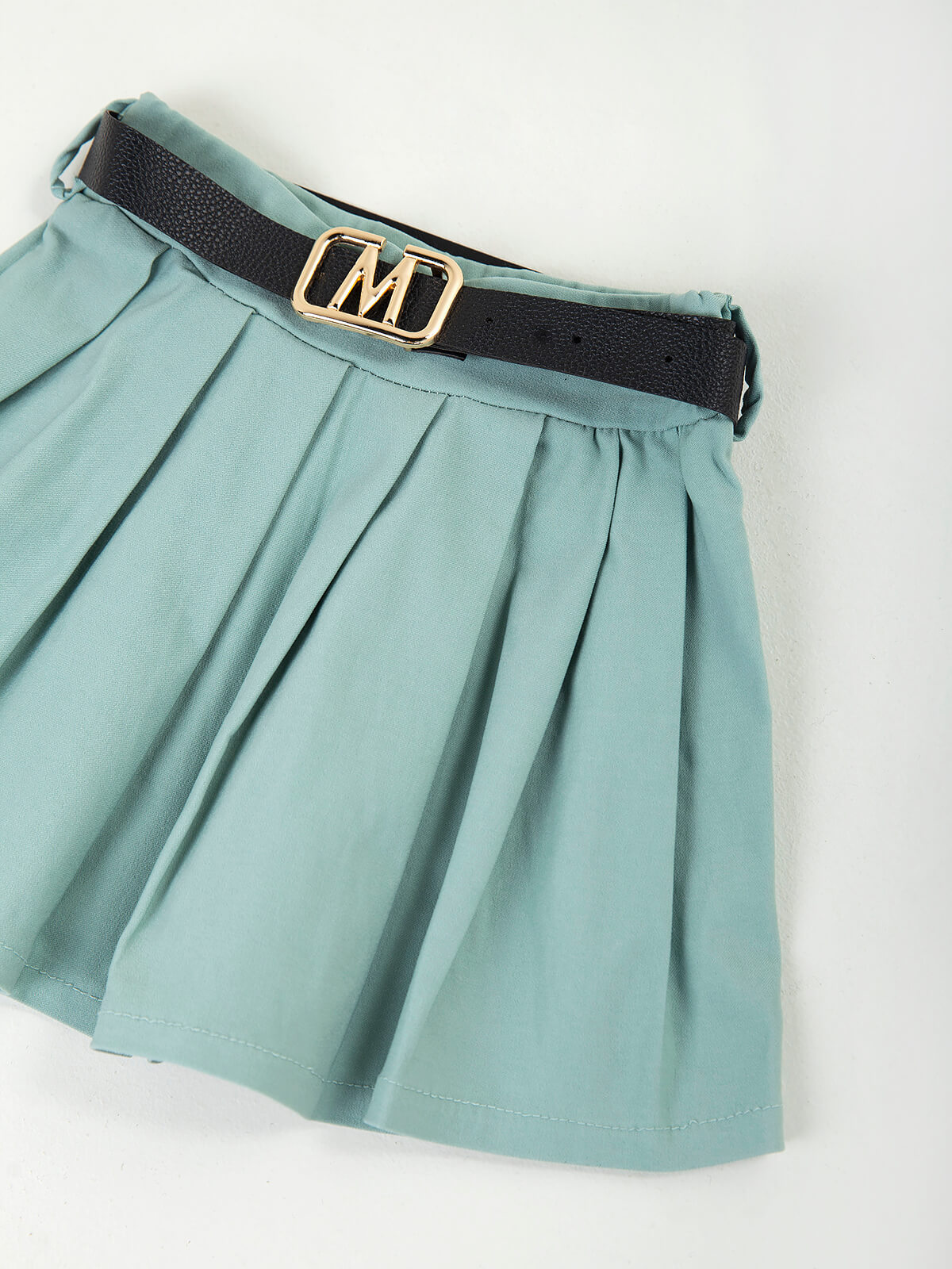 Saia às pregas com cinto removível. Saia curta com cintura elástica para menina.