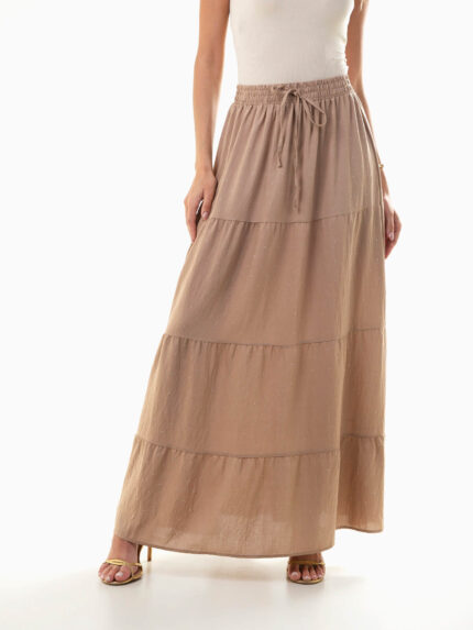 Saia preta midi em pele sintética para senhora. Saia de cintura alta corte evasé com bolso pala lateral e fecho decorativo. Aperto frontal de fecho éclair.