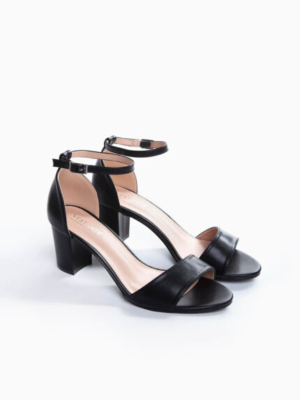 Sandálias de tacão largo branca com efeito pele. Sandálias com biqueira redonda. Fecho com fivela no tornozelo.