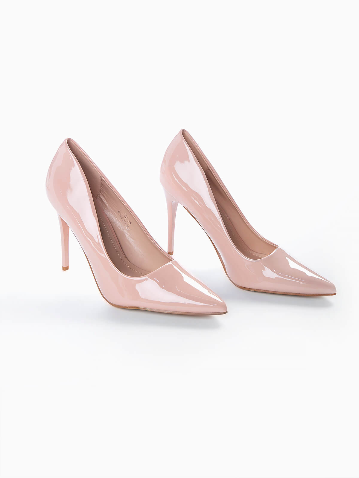Sapatos tacão alto rosa em verniz para efeito brilhante. Sapatos de bico tacão alto fino.