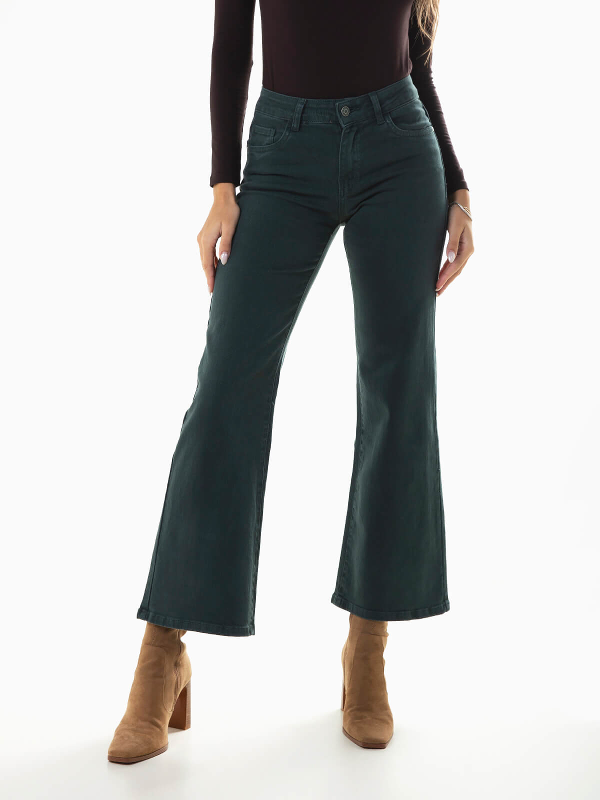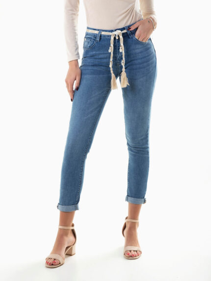 Straight jeans com cintura média para senhora. Calças ganga largas com 5 bolsos. Aperto fecho éclair e botão.