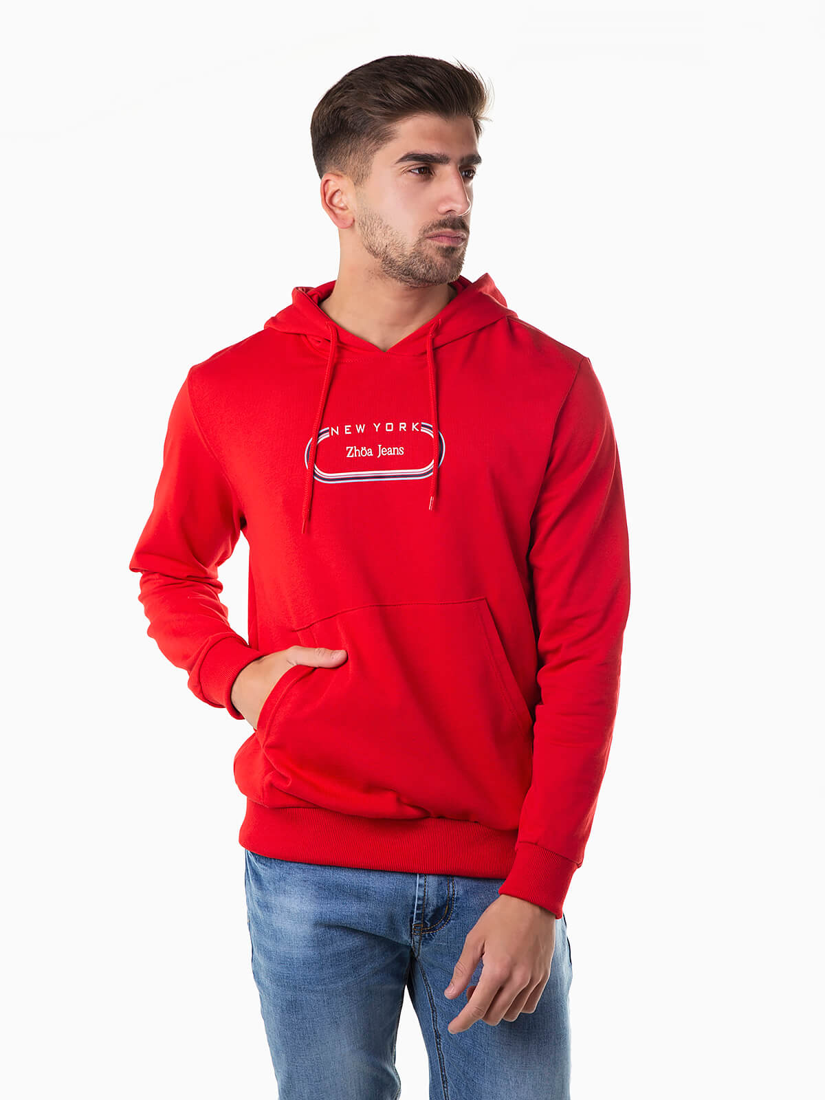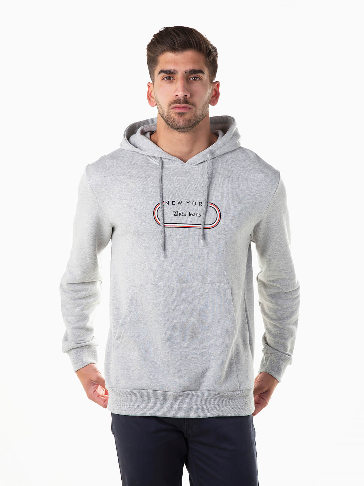 Sweatshirt com capuz e cordão para ajustar. Hoodie manga comprida com estampado no peito e bolso canguru. Acabamentos elásticos.