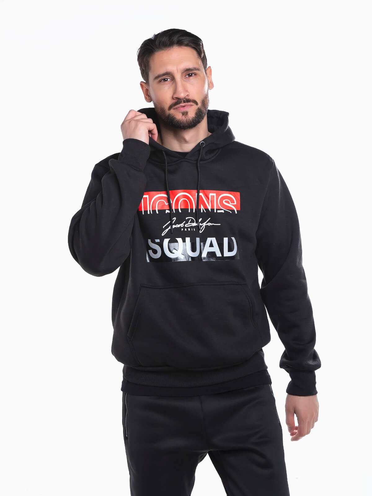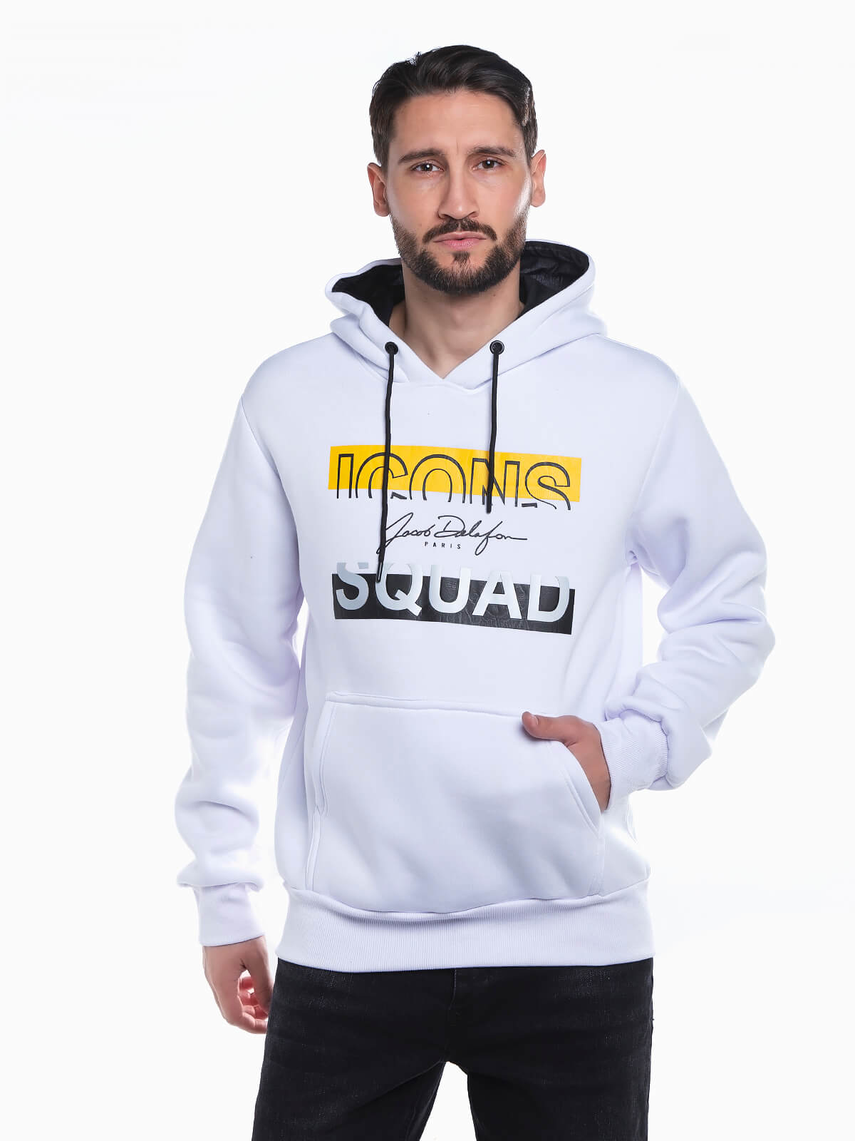 Sweatshirt capuz com cordão para ajustar. Hoodie felpa manga comprida com estampado no peito. Bolso canguru e interior cardado. Acabamentos elásticos.