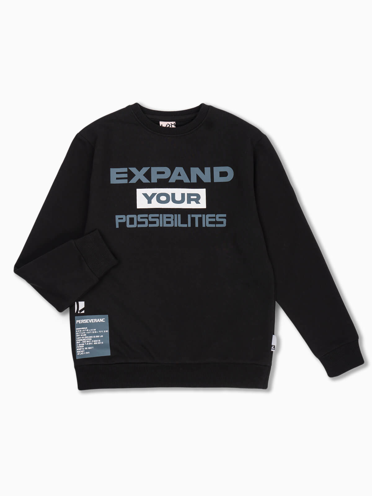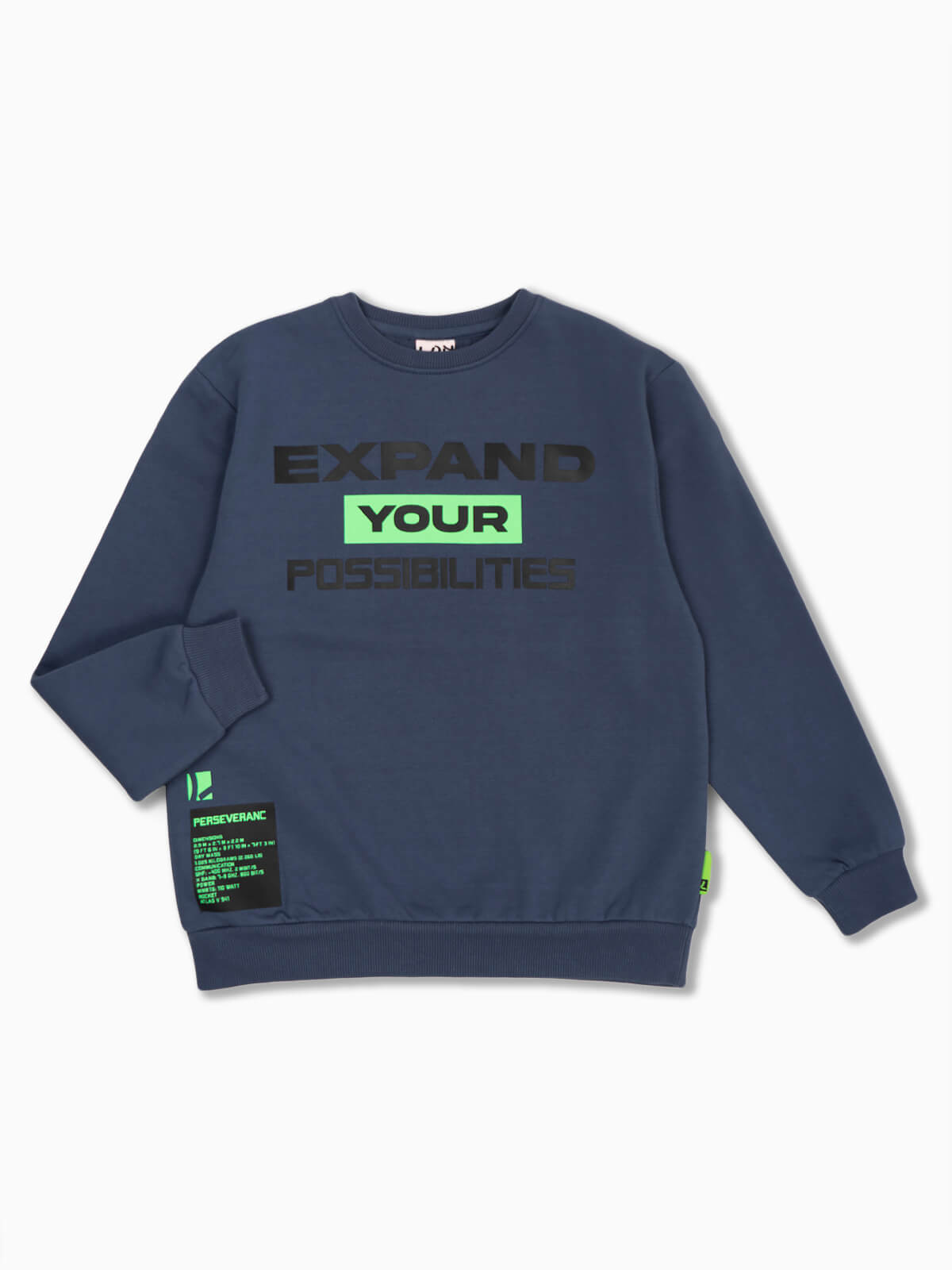 Sweatshirt com interior cardado e mensagem estampada à frente. Sweatshirt manga comprida para menino com acabamentos canelados. Gola redonda.