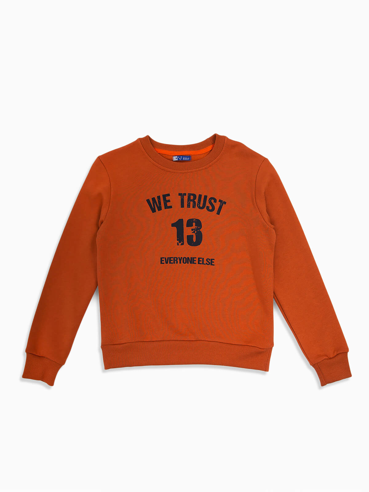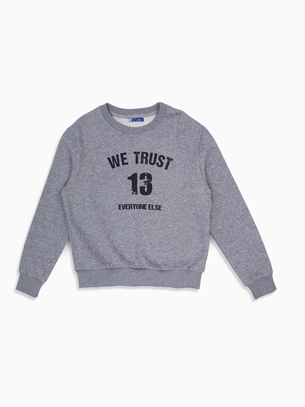 Sweatshirt cardada para menino com estampado de letras no peito. Sweatshirt manga comprida com gola redonda. Extremidades caneladas.