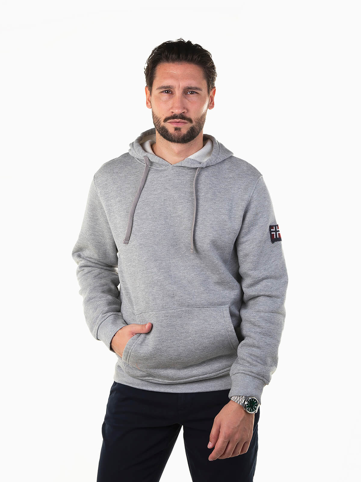 Sweatshirt para homem com capuz ajustável por cordão e bolso canguru. Detalhe de símbolo bordado na manga e interior cardado para maior conforto. Uma peça essencial e versátil, perfeita para looks casuais ou de fim de semana.