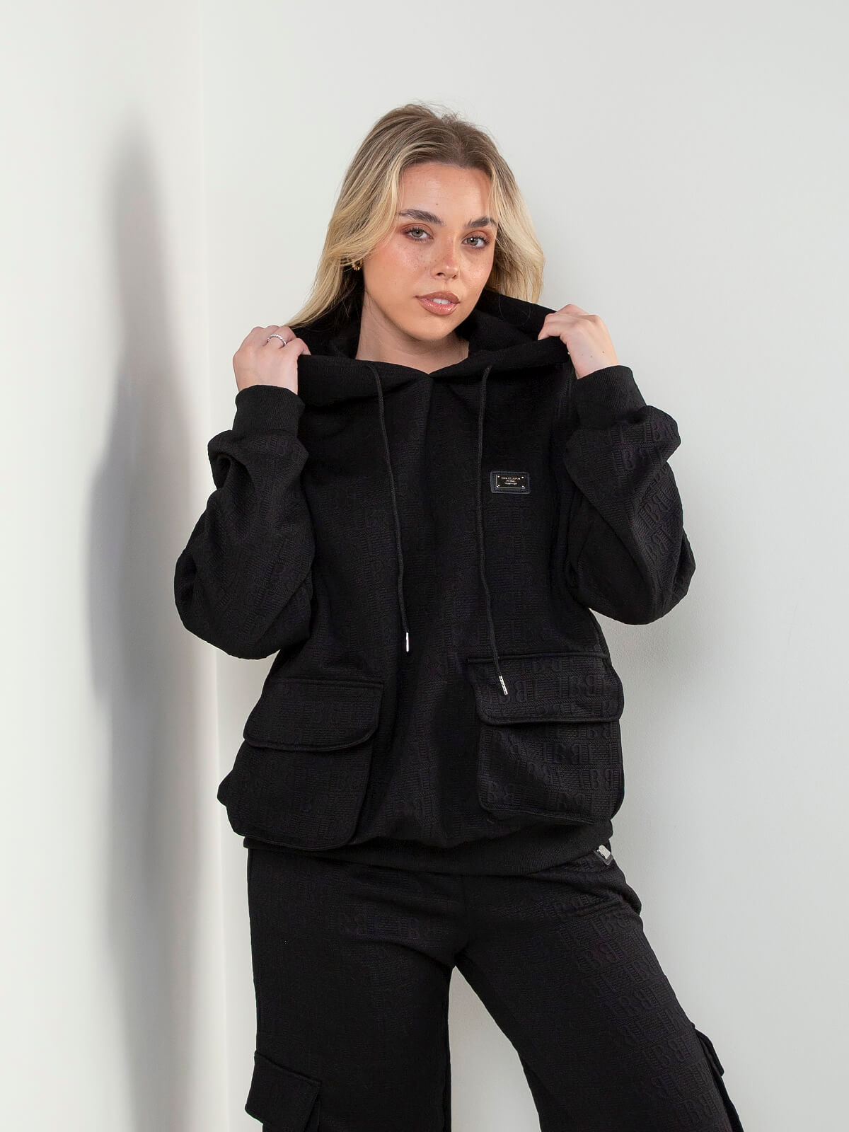 Sweatshirt branca com capuz, bolsos frontais e textura em relevo. Confortável e atual, perfeita para looks casuais com jeans ou calças cargo.