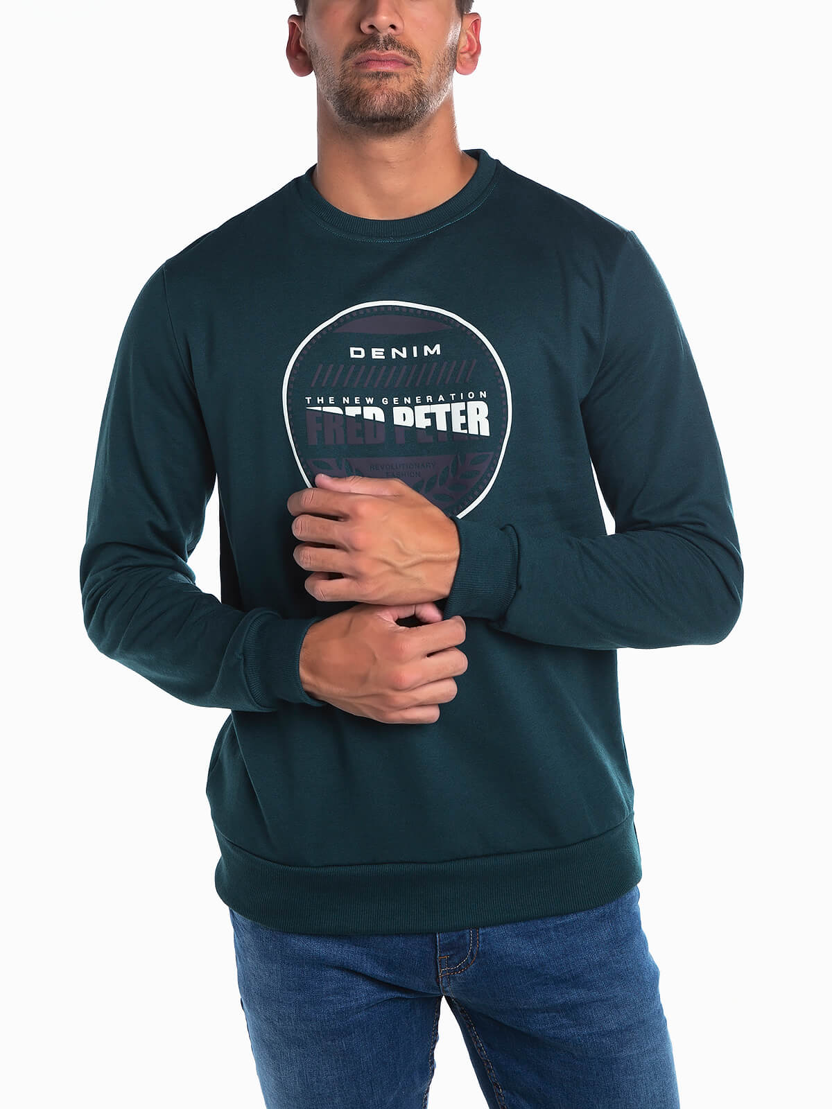 Sweatshirt com estampado de círculo em borracha saliente. Sweatshirt para homem com interior cardado e manga comprida. Acabamentos elásticos e gola redonda.