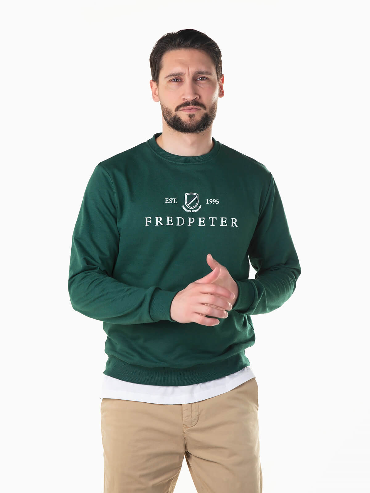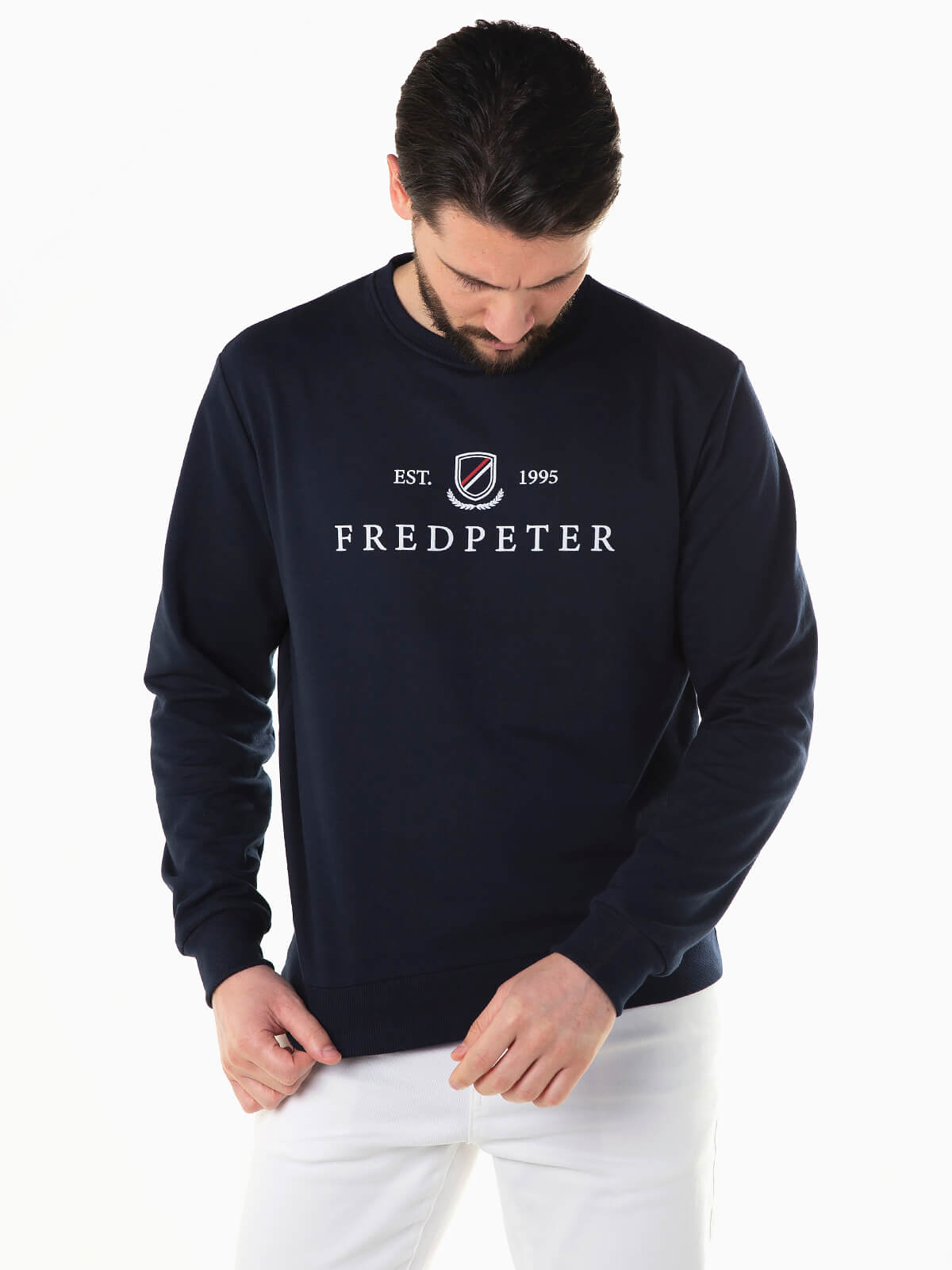 Sweatshirt para homem com estampado no peito. Sweatshirt felpa de manga comprida com gola redonda. Acabamentos em nervuras.