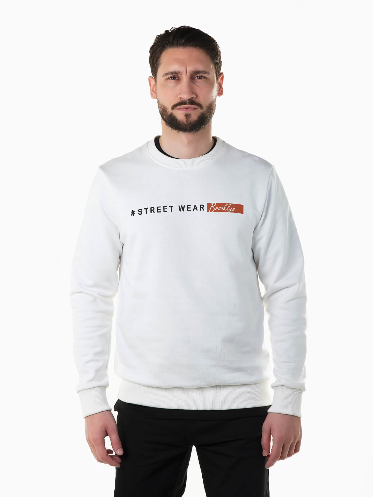 Sweatshirt com letras estampadas no peito. Sweatshirt felpa de manga comprida com acabamentos elásticos. Gola redonda.