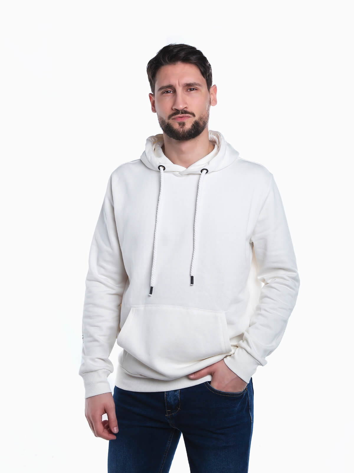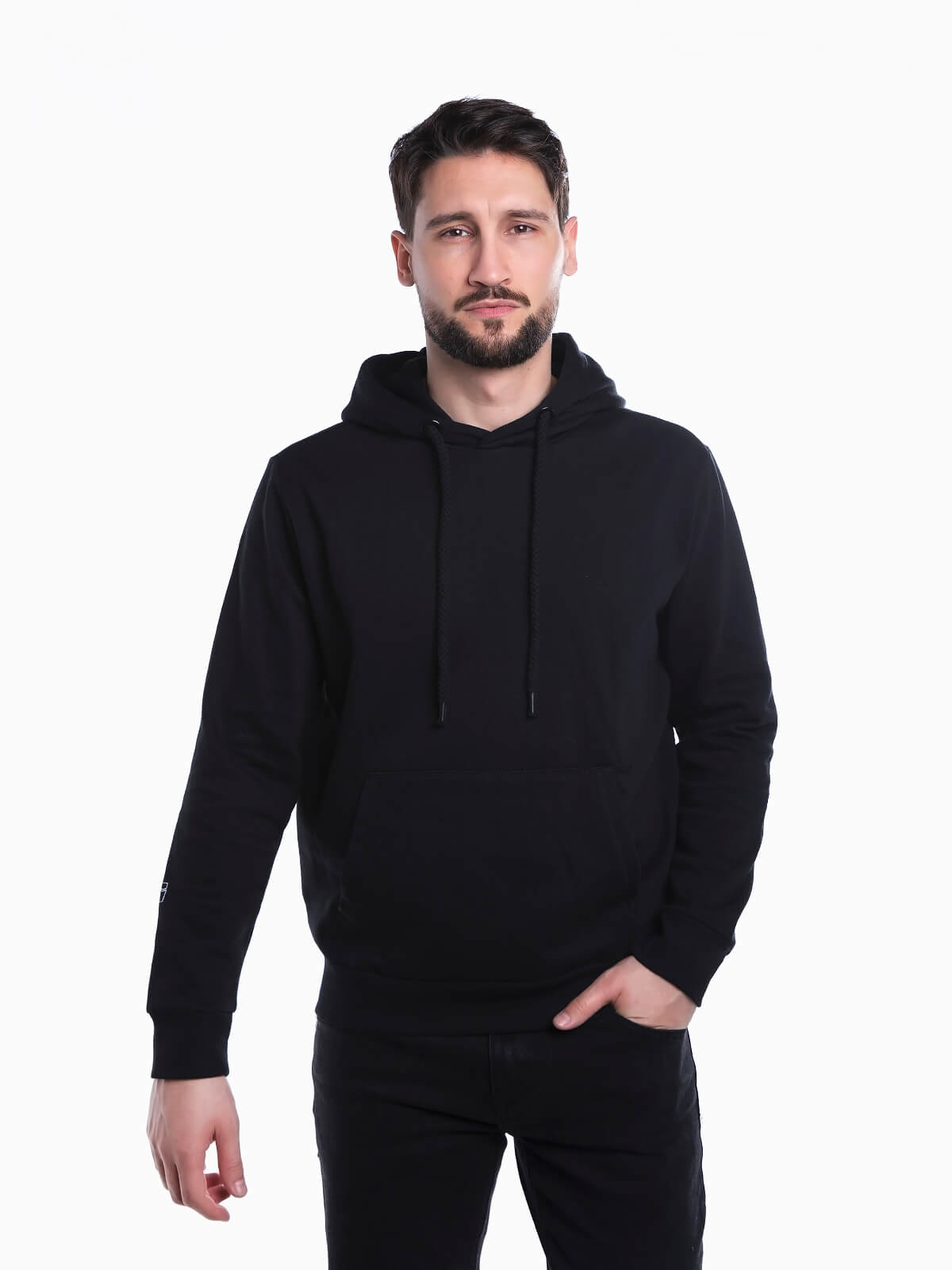 Sweatshirt felpa com capuz e cordão para ajustar. Hoodie básica com pormenor de símbolo estampado no capuz e manga. Interior cardado. Bolso canguru. Extremidades caneladas.