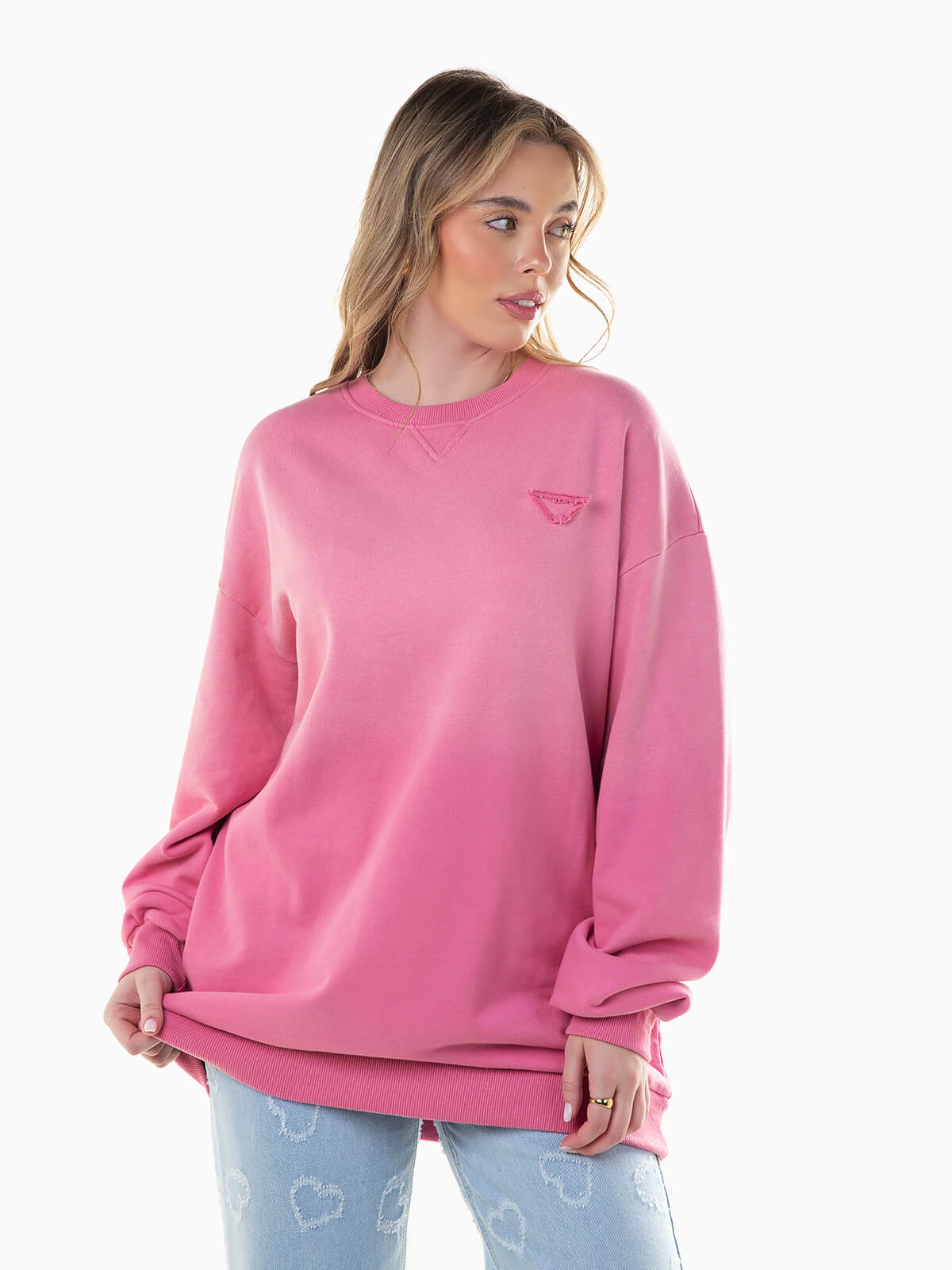 Sweatshirt oversized com pormenor bordado no peito. Sweatshirt felpa de manga comprida com decote redondo e acabamentos canelados.