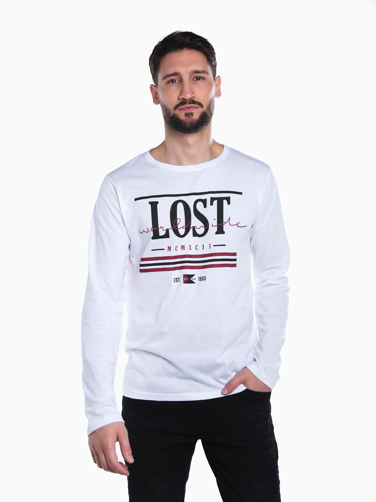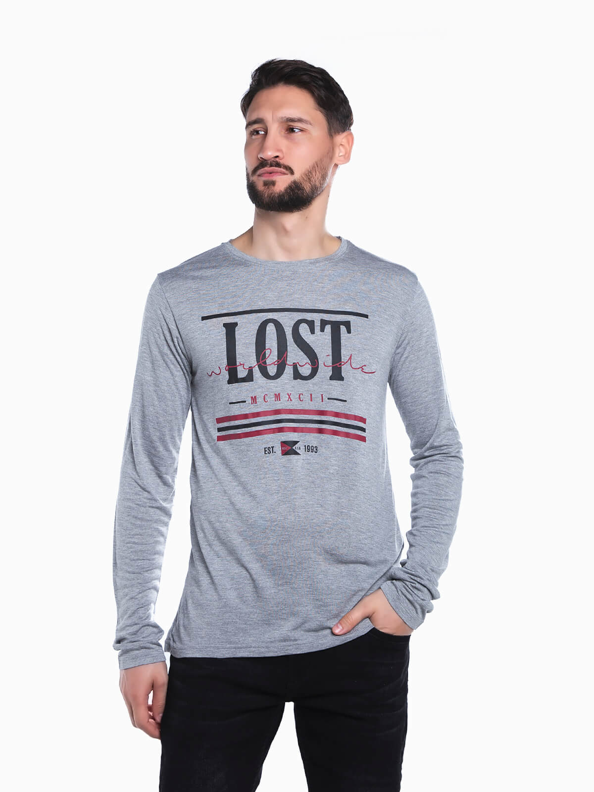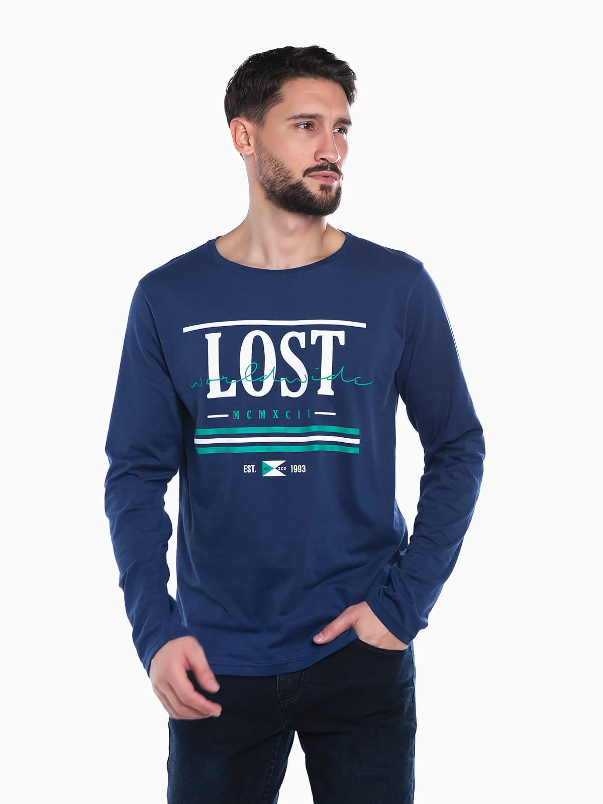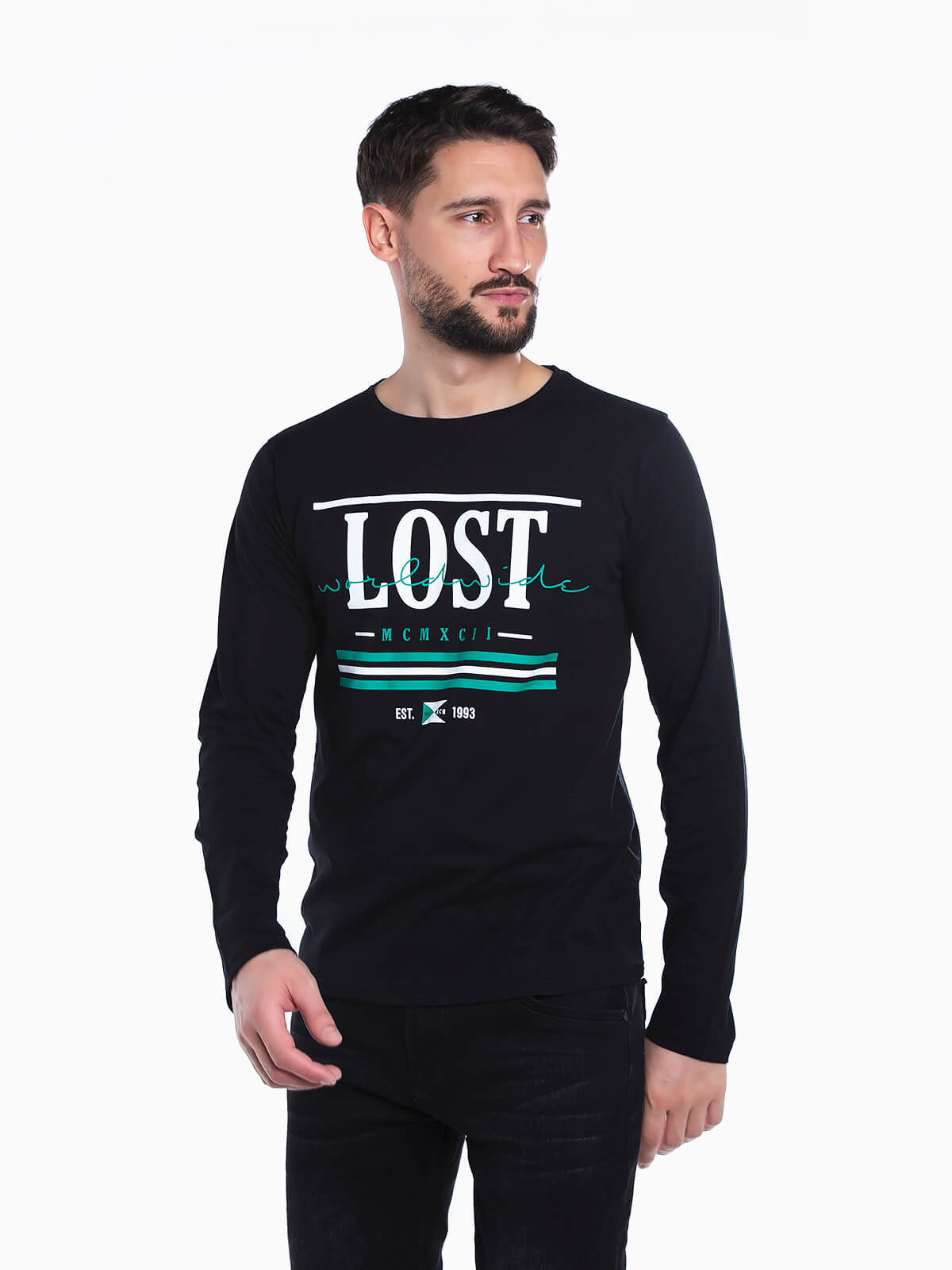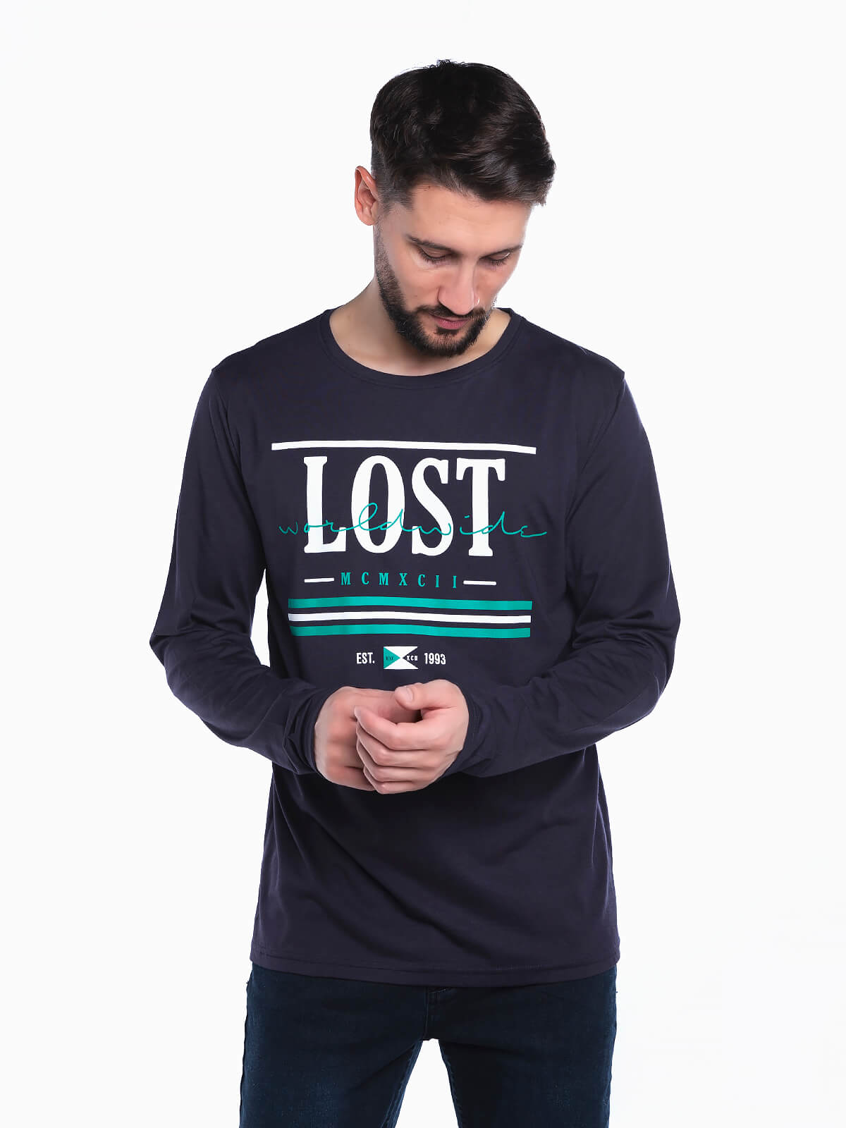 T-shirt em tecido 100% algodão de manga comprida para homem. T-shirt com estampado no peito. Gola redonda.