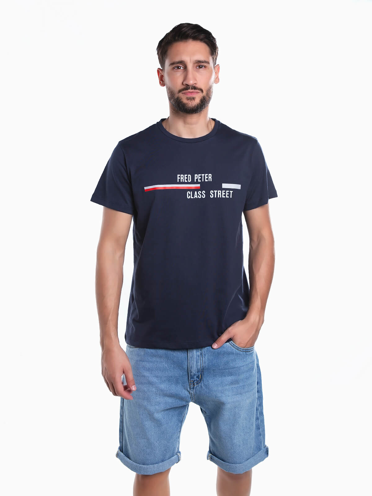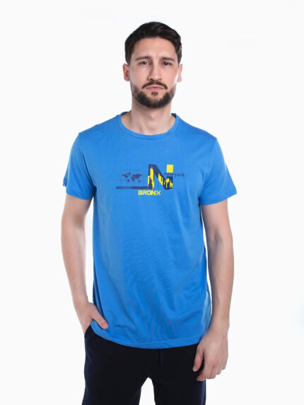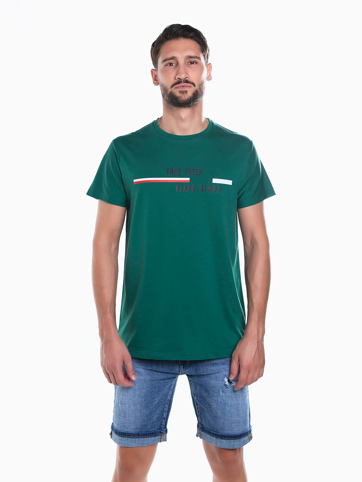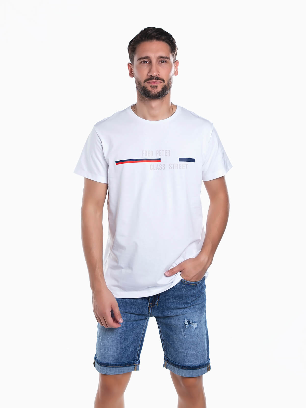 T-shirt em tecido 100% algodão com letras e bandas de cor estampadas. T-shirt de manga curta para homem com gola redonda.