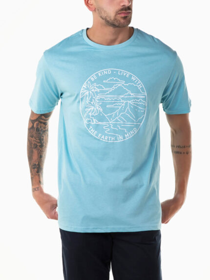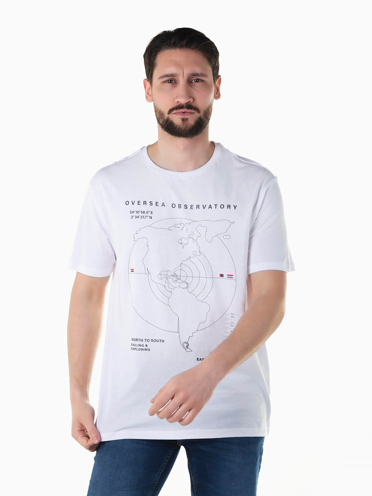 T-shirt com estampado de mapa e letras. T-shirt de manga curta 100% algodão para maior conforto e respirabilidade. Gola redonda.