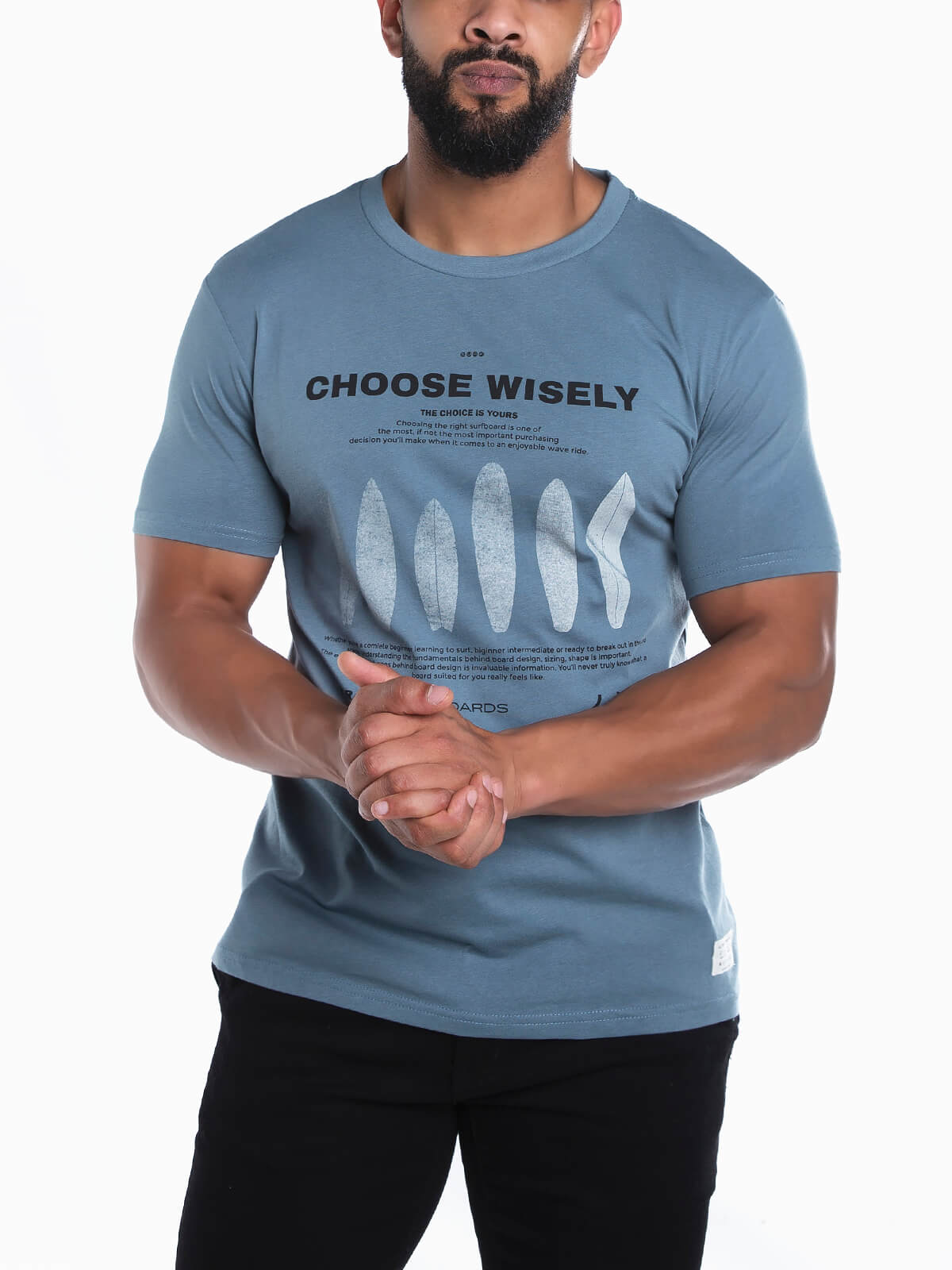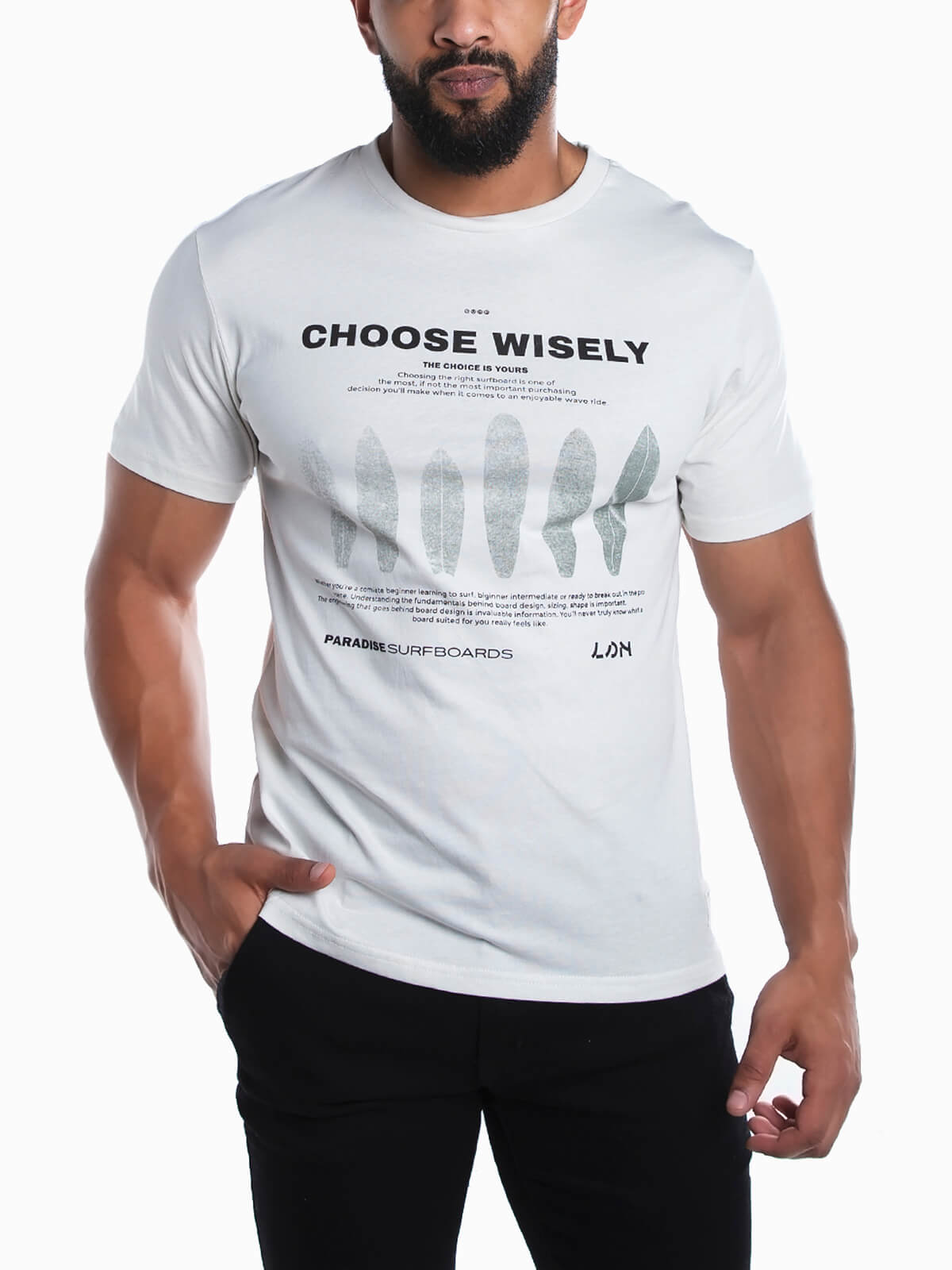 T-shirt em tecido 100% algodão de manga curta para homem. T-shirt com estampado no peito e gola redonda.