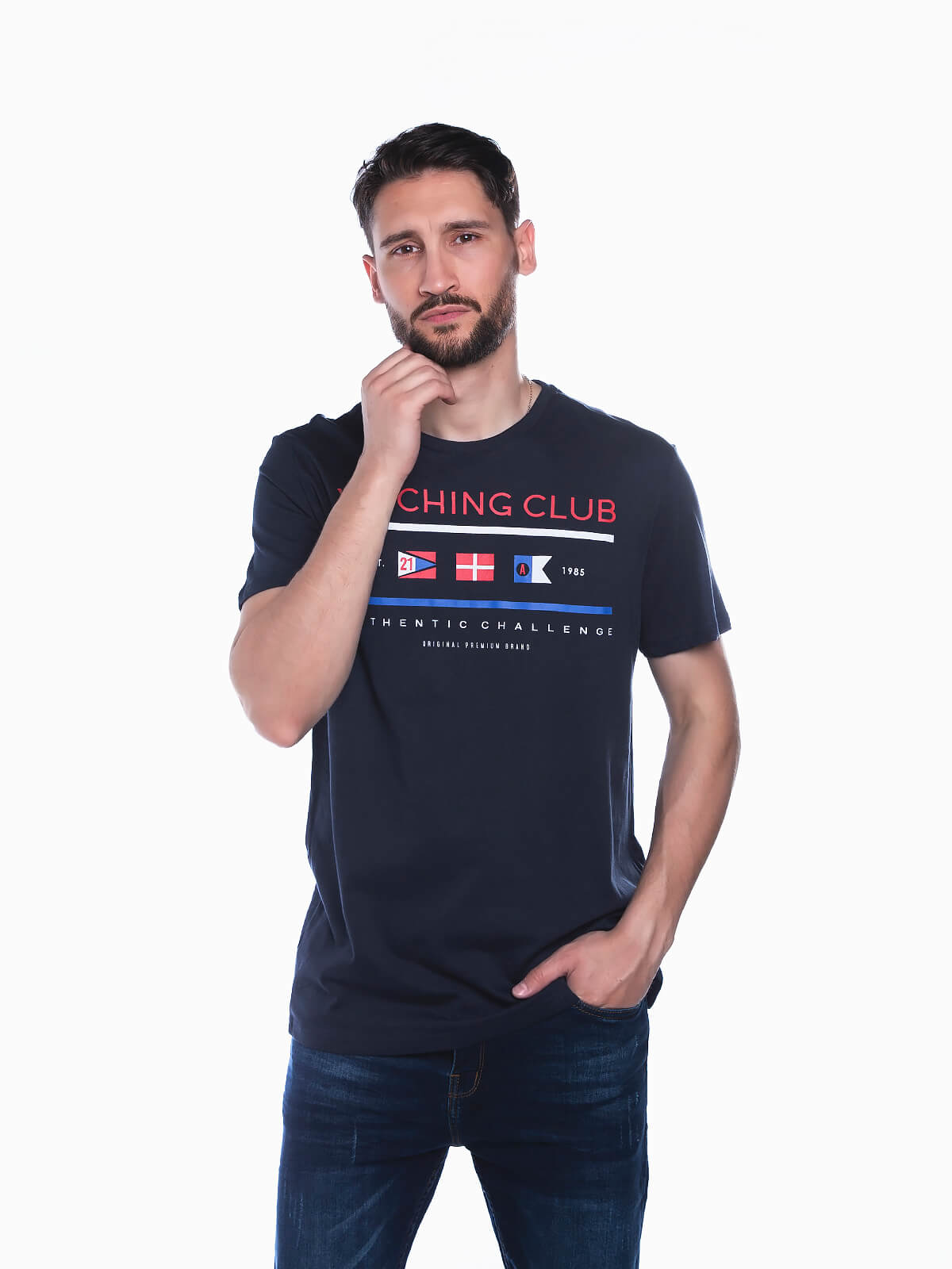 T-shirt em tecido 100% algodão de manga curta para homem. T-shirt estampado com gola redonda.