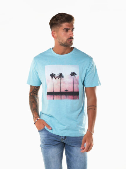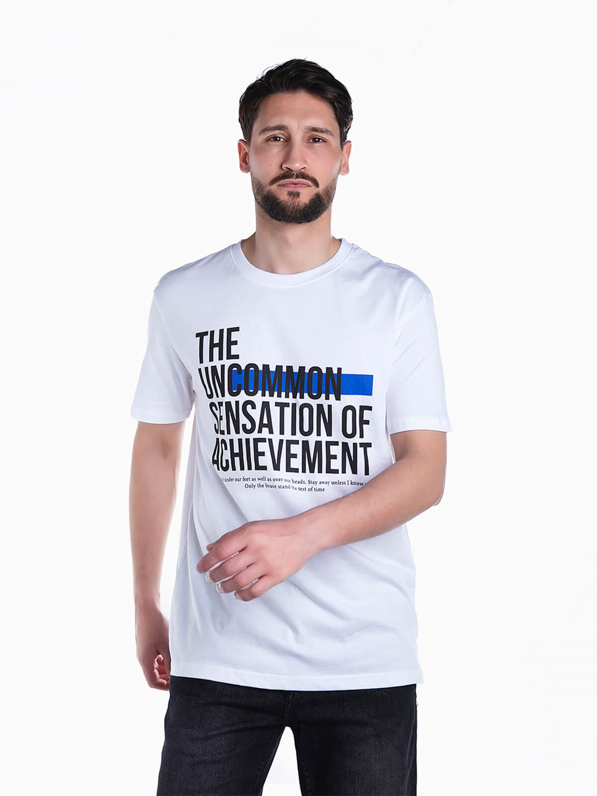 T-shirt em tecido 100% algodão de manga curta. T-shirt estampada com letras. Gola redonda.