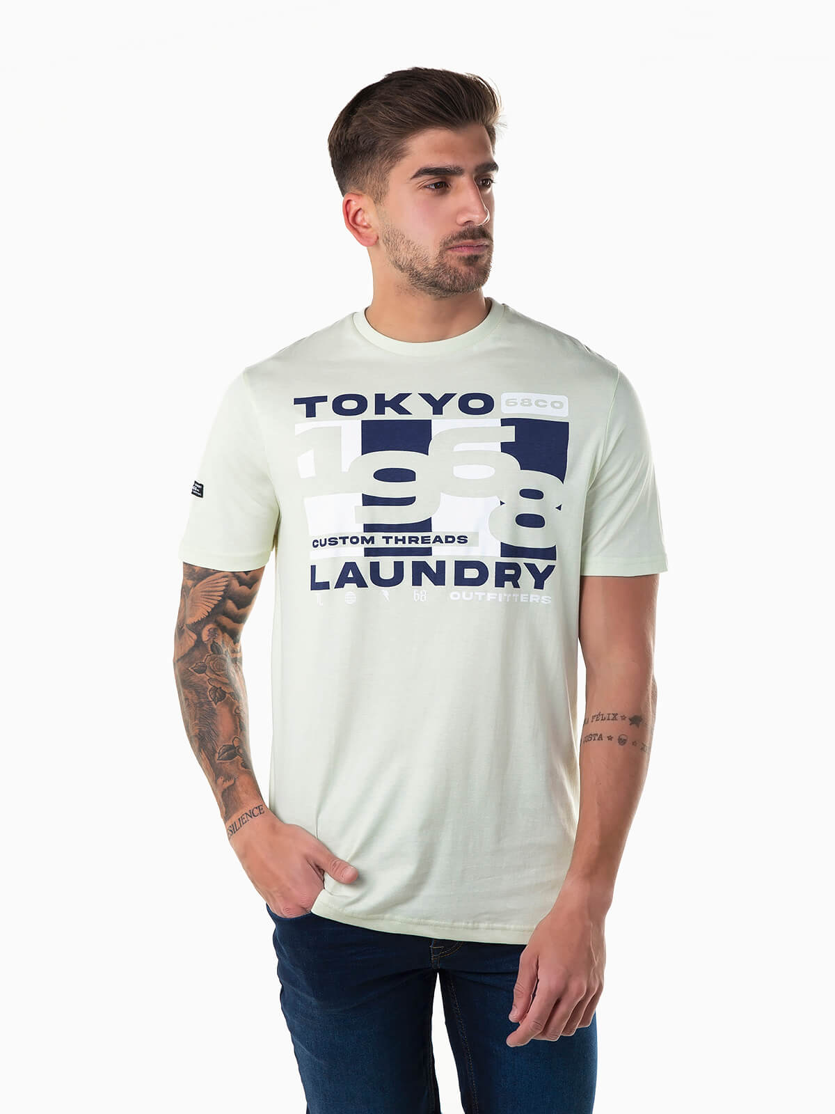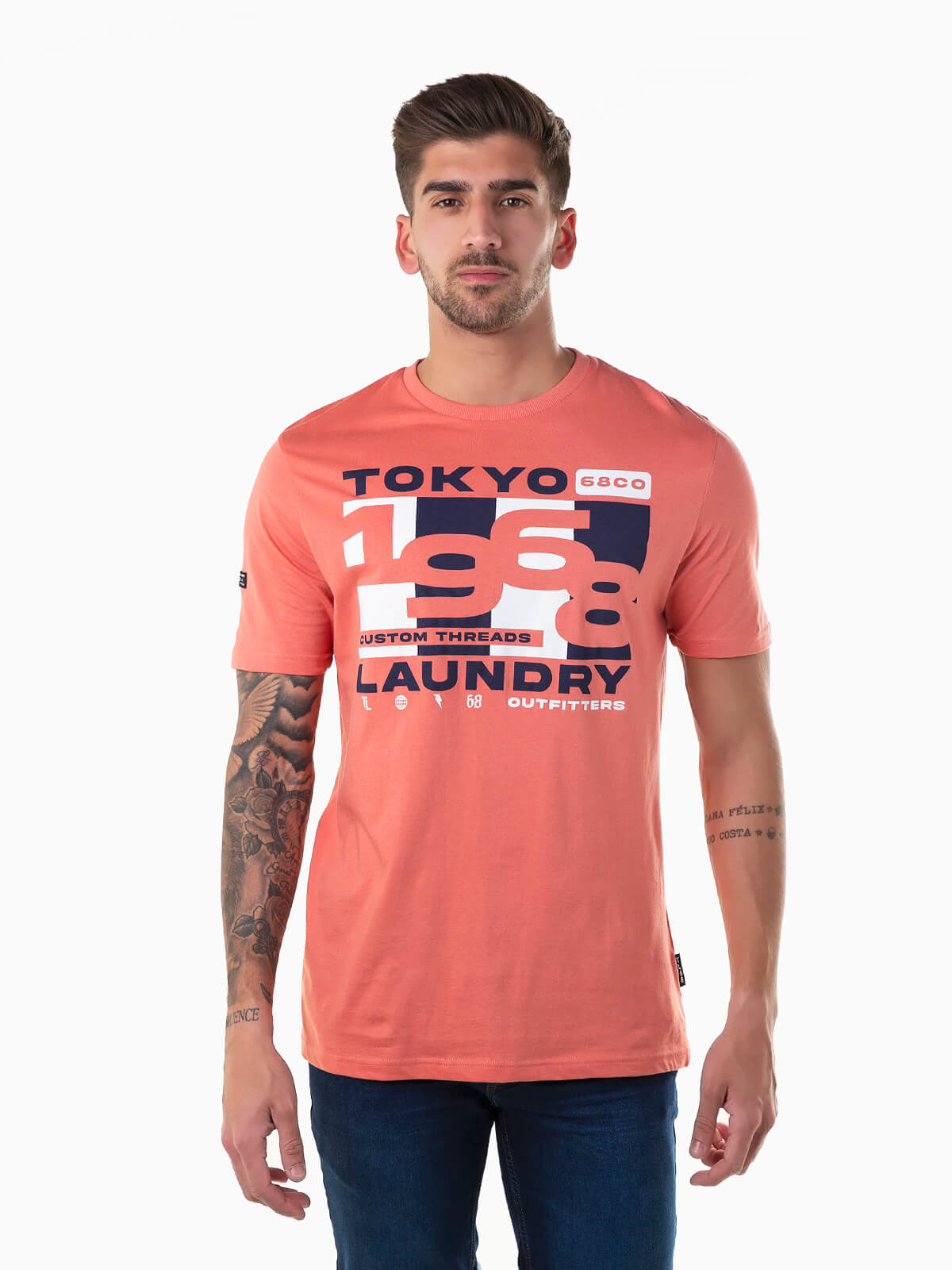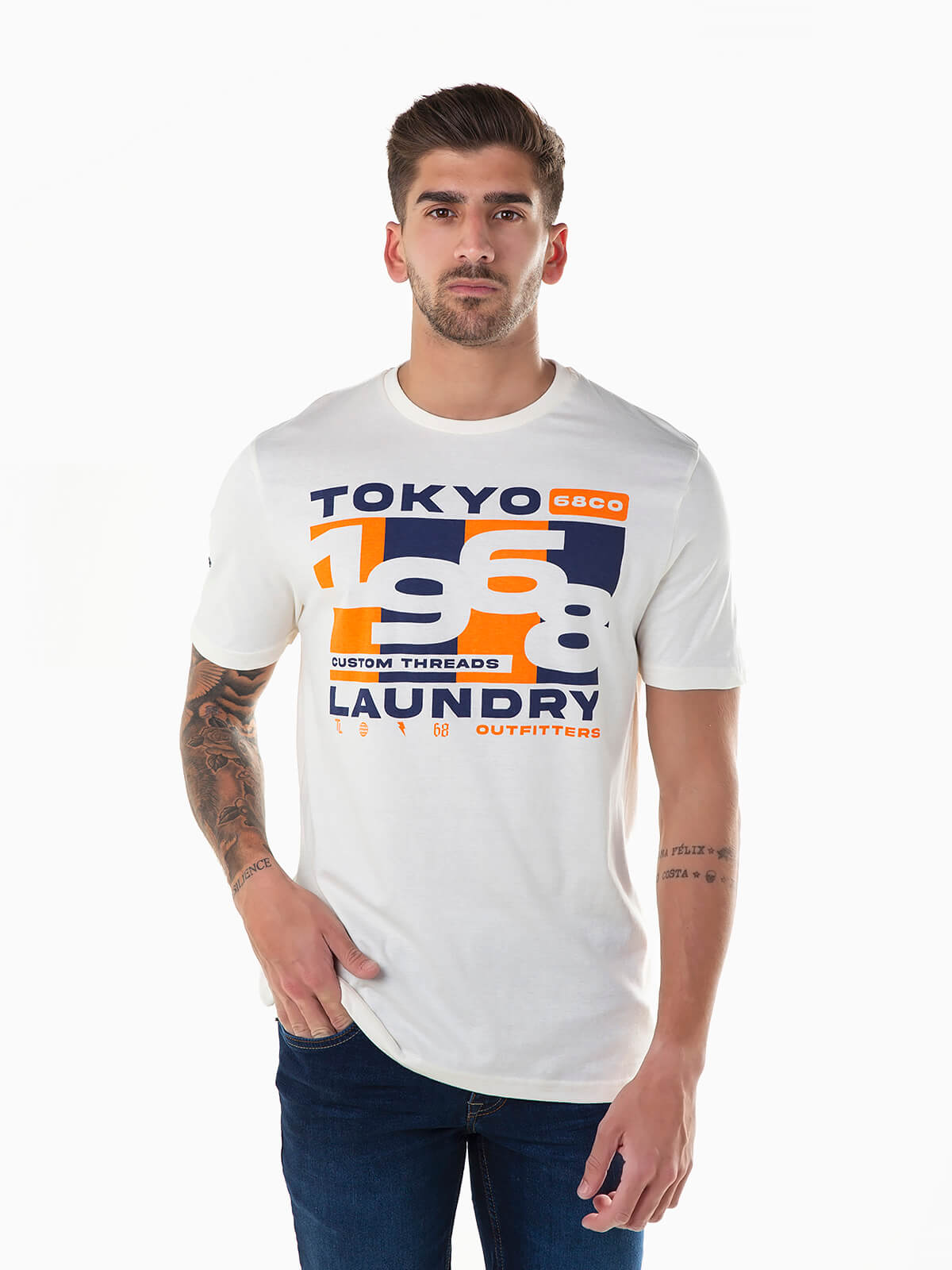 T-shirt 100% algodão, confortável e respirável de manga curta para homem. T-shirt com estampado no peito e gola redonda.