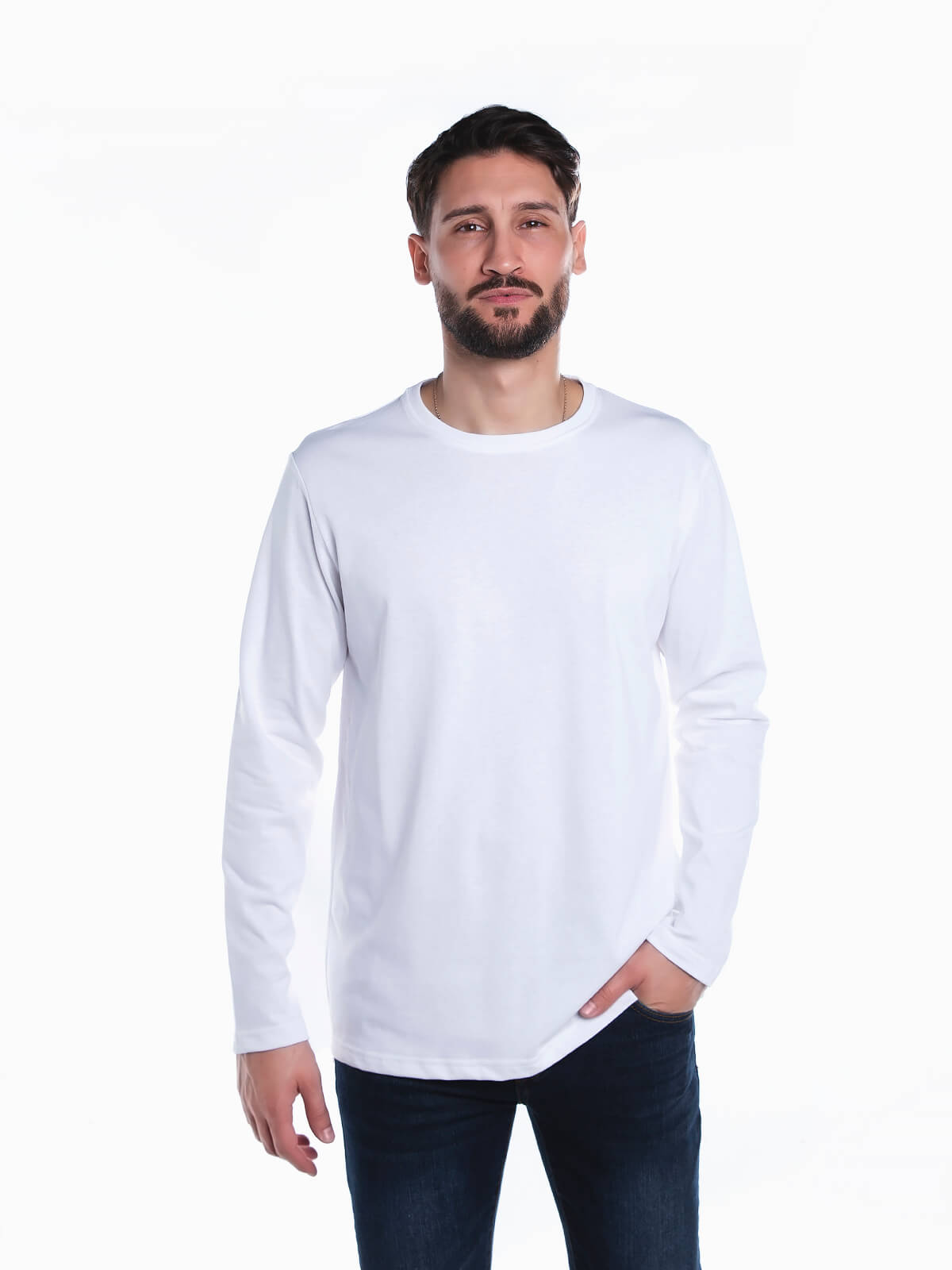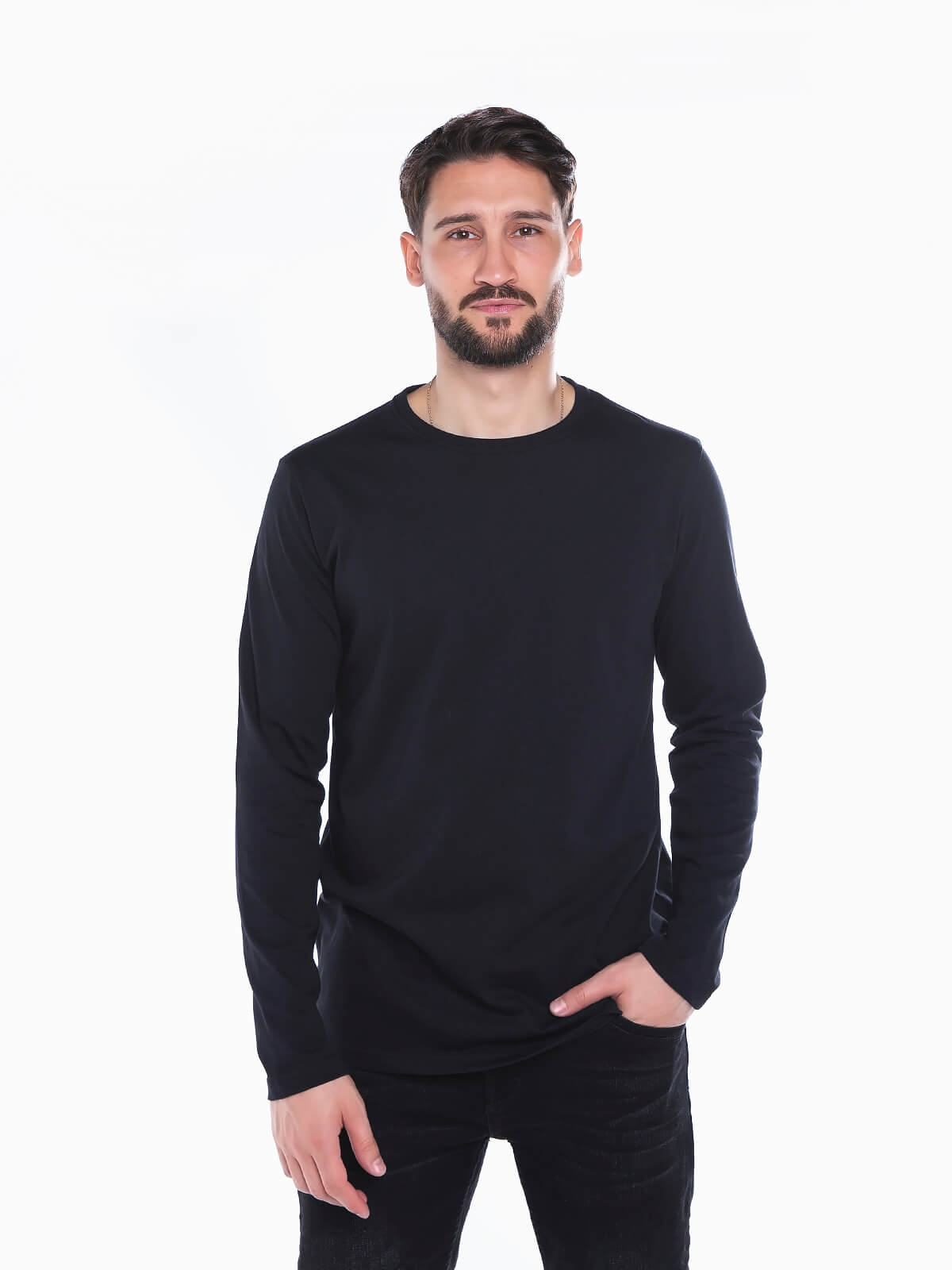 T-shirt básica de manga comprida para homem. T-shirt em tecido 100% algodão com gola redonda canelada.