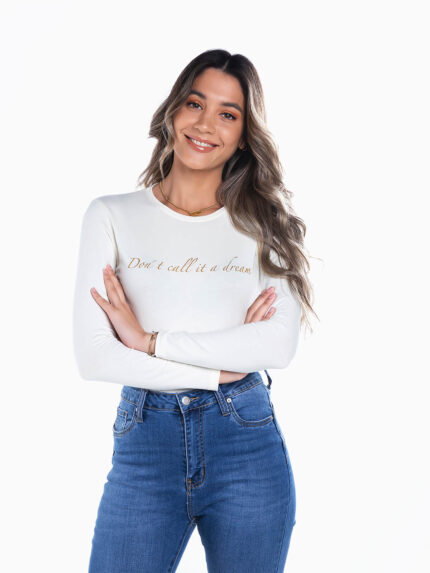 Início Mulher T-shirts T-shirt básica manga comprida cardada