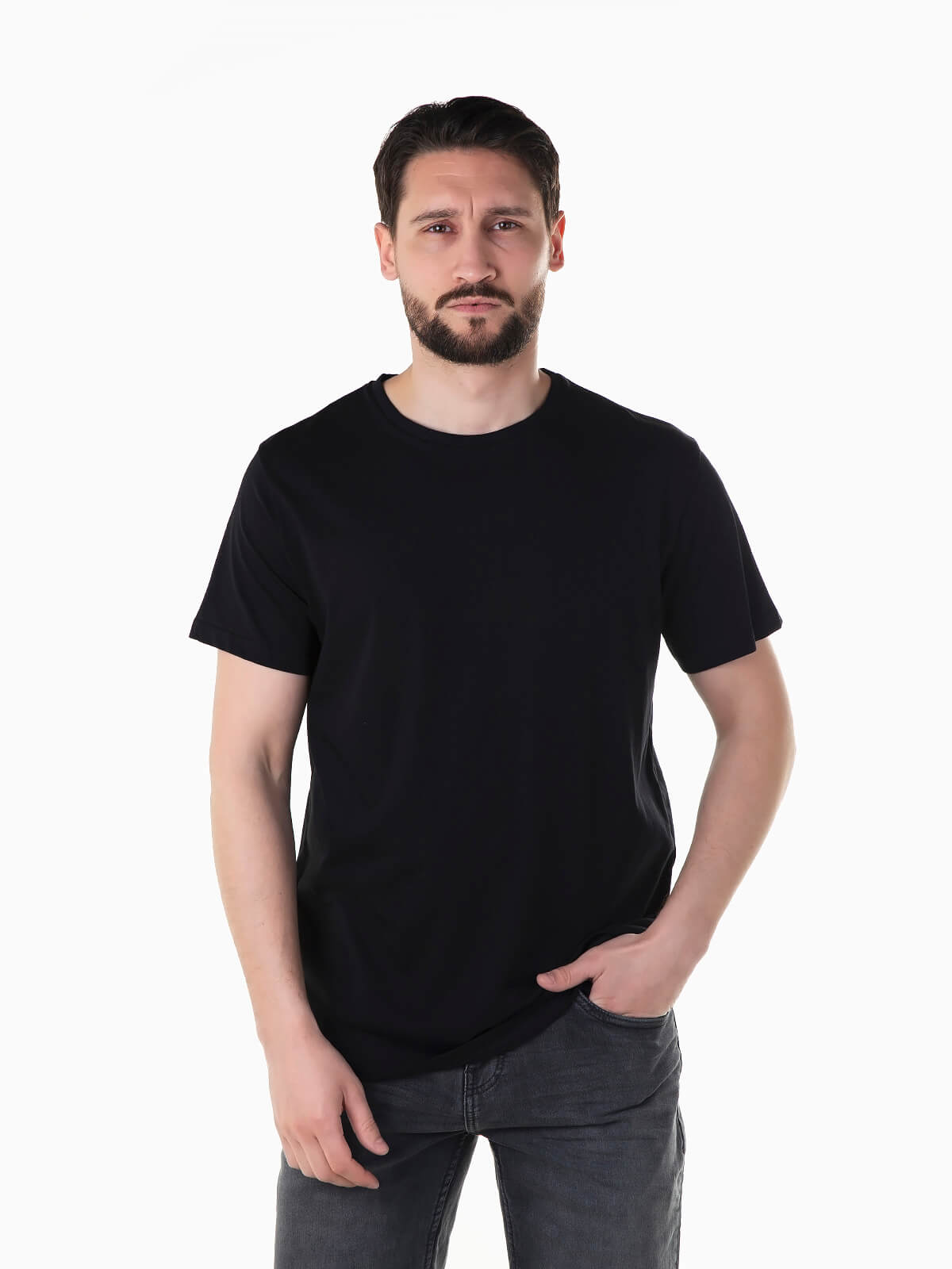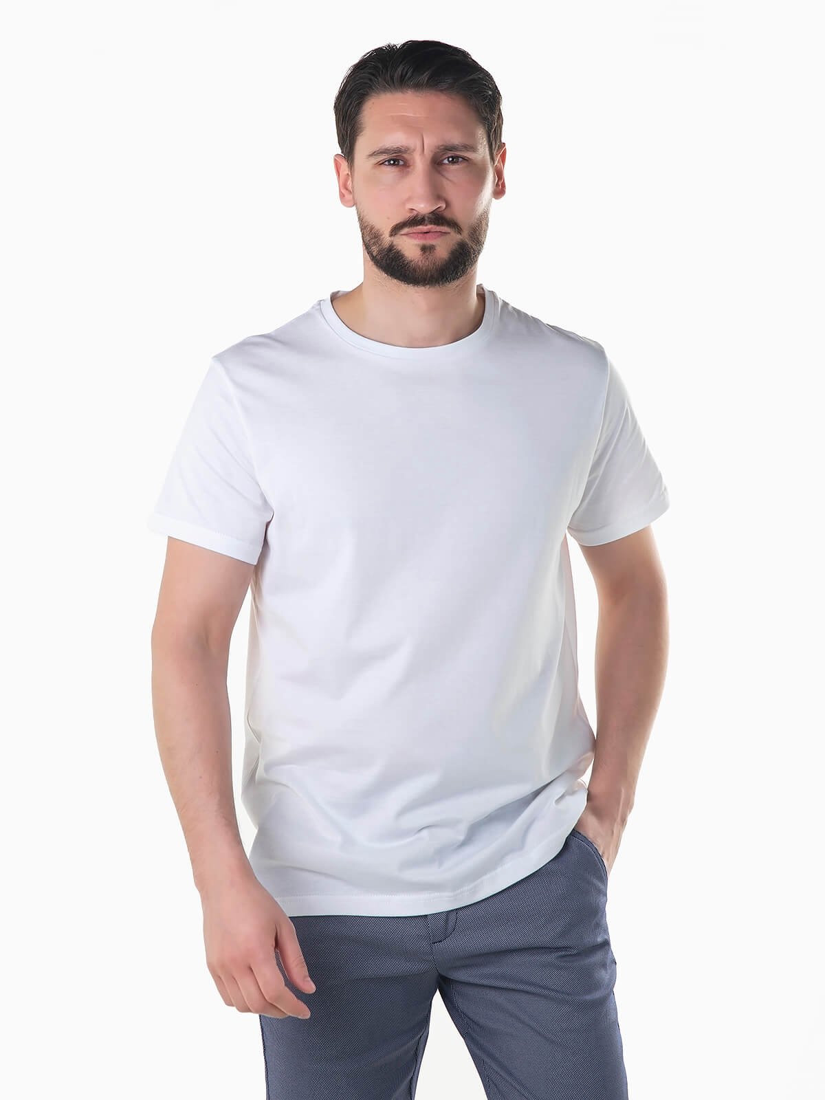 T-shirt básica de manga curta para homem. T-shirt 100% algodão para maior conforto e respirabilidade. Gola redonda.
