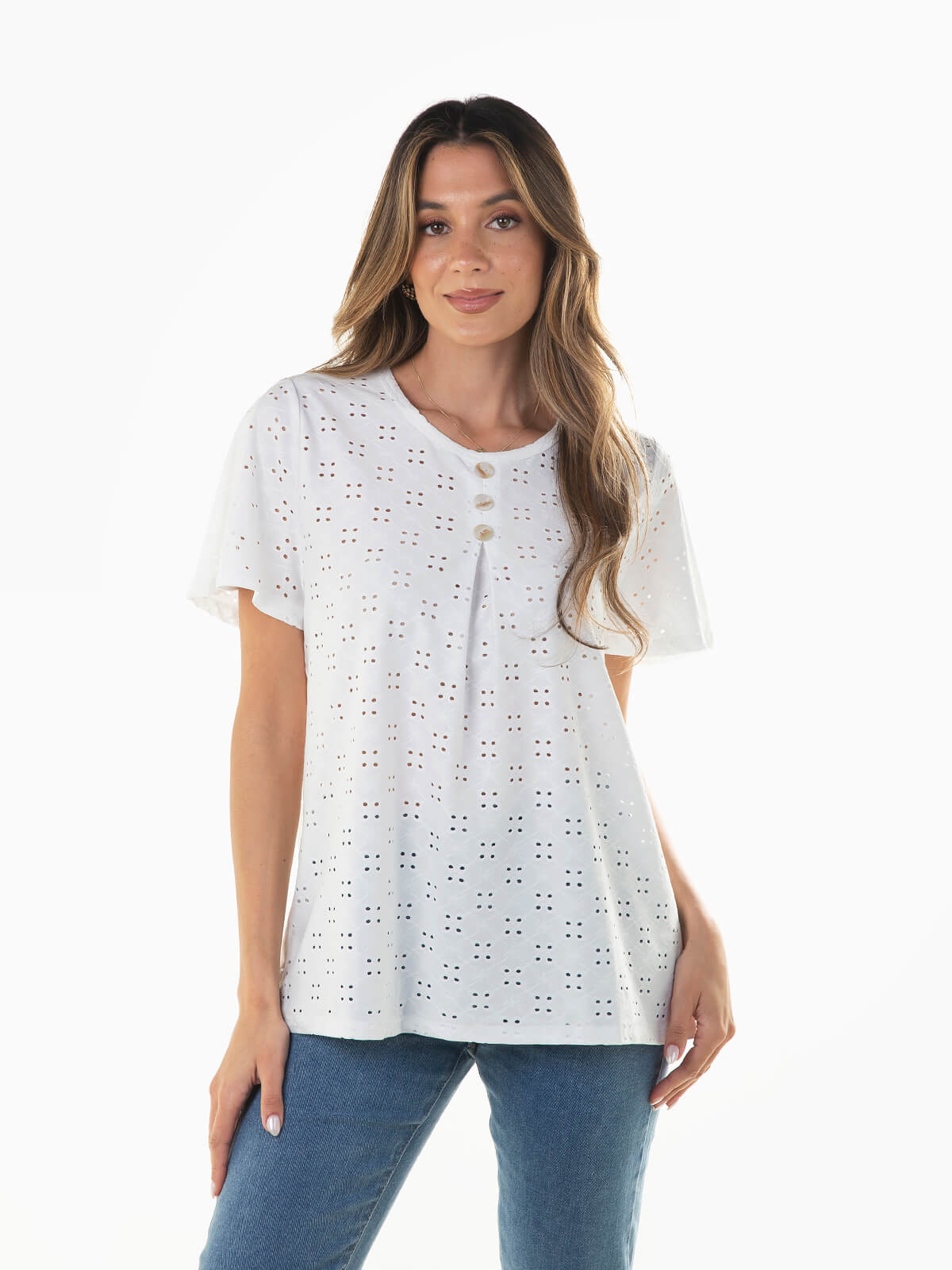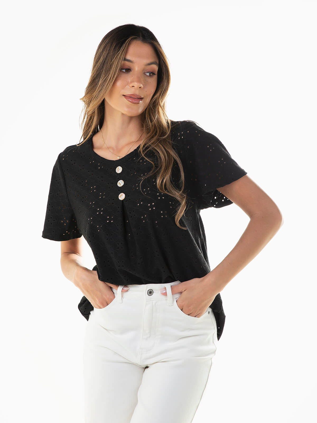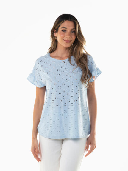 Início Mulher T-shirts T-shirt bordado inglês com botões